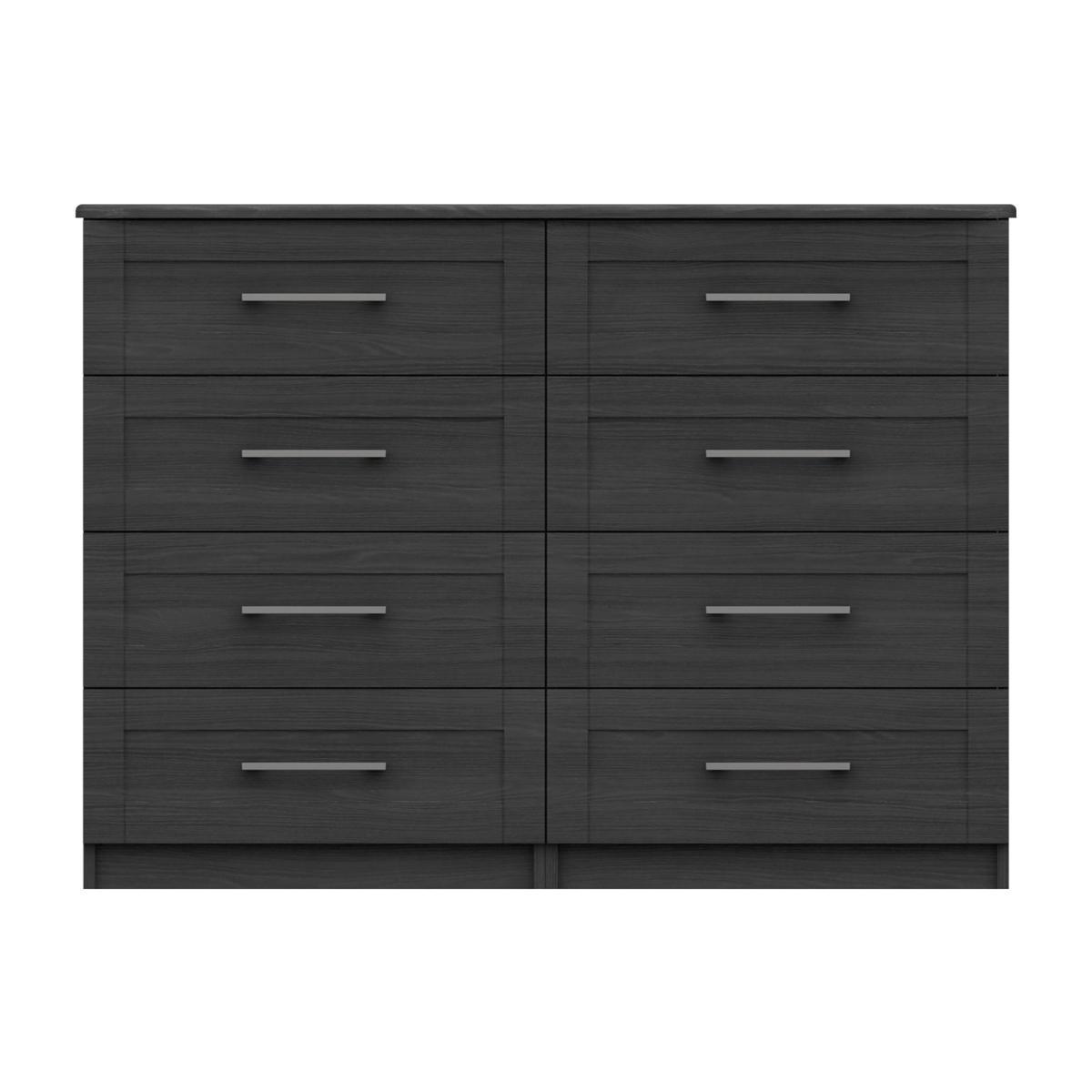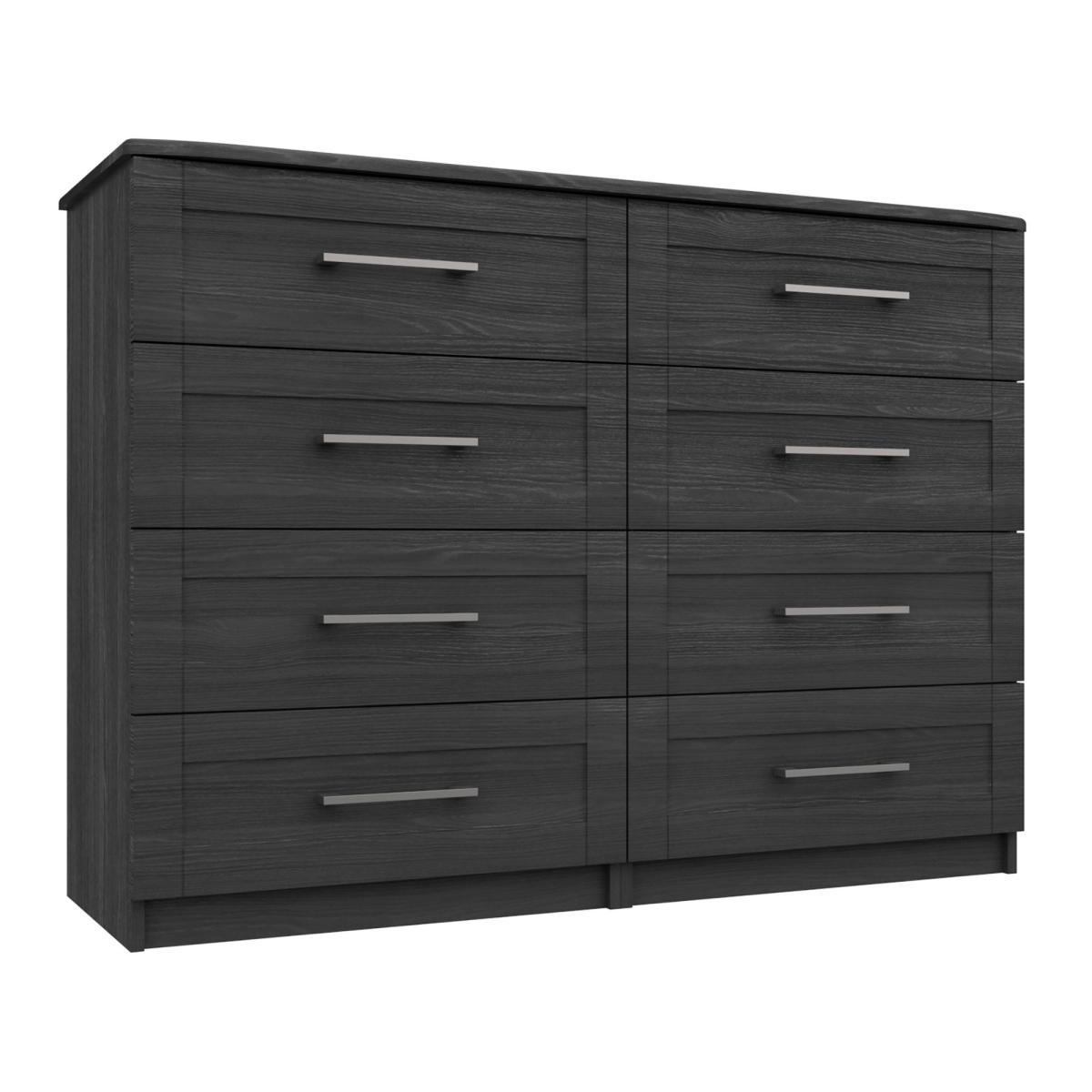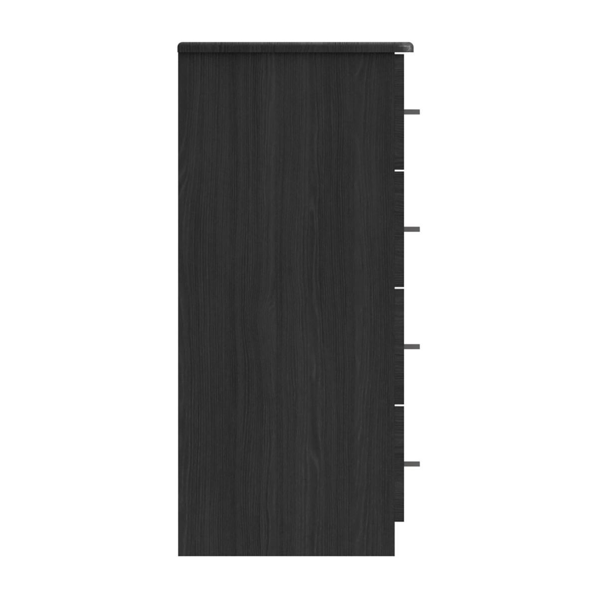 This stylish Chest of Drawers features profiled doors with shaker style metal handles. Including high quality components and multi-adjustable hinges this Chest of Drawers isn't just practical but features a beautifully designed grain effect finish with a crisp graphite coloured coat, perfect for almost any bedroom. Even the small details count as this product offers Easy Glide drawer runners and a premium linen wrap on the sides of the drawers.