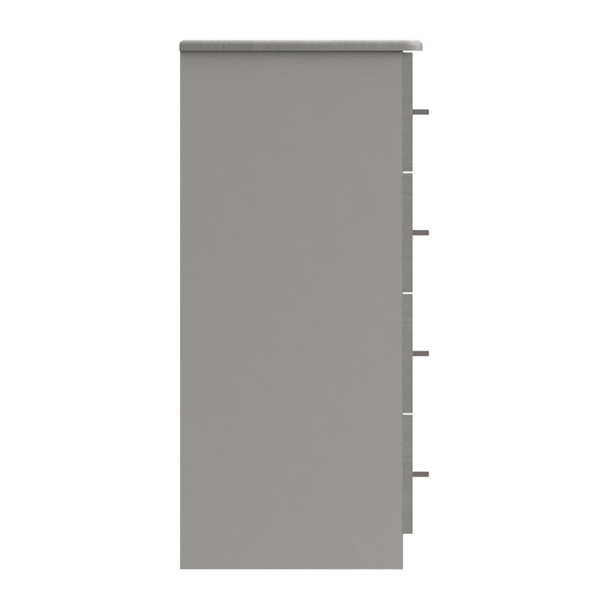 This stylish Chest of Drawers features profiled doors with shaker style metal handles. Including high quality components and multi-adjustable hinges this Chest of Drawers isn't just practical but features a beautifully designed grain effect finish with a crisp Light Grey coloured coat, perfect for almost any bedroom. Even the small details count as this product offers Easy Glide drawer runners and a premium linen wrap on the sides of the drawers.