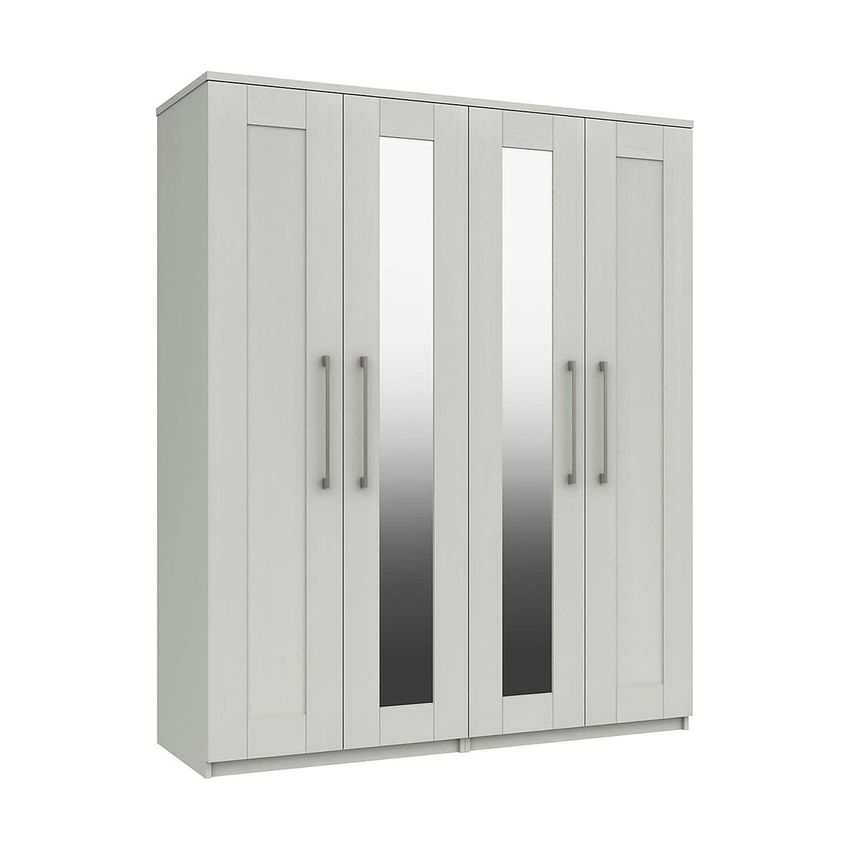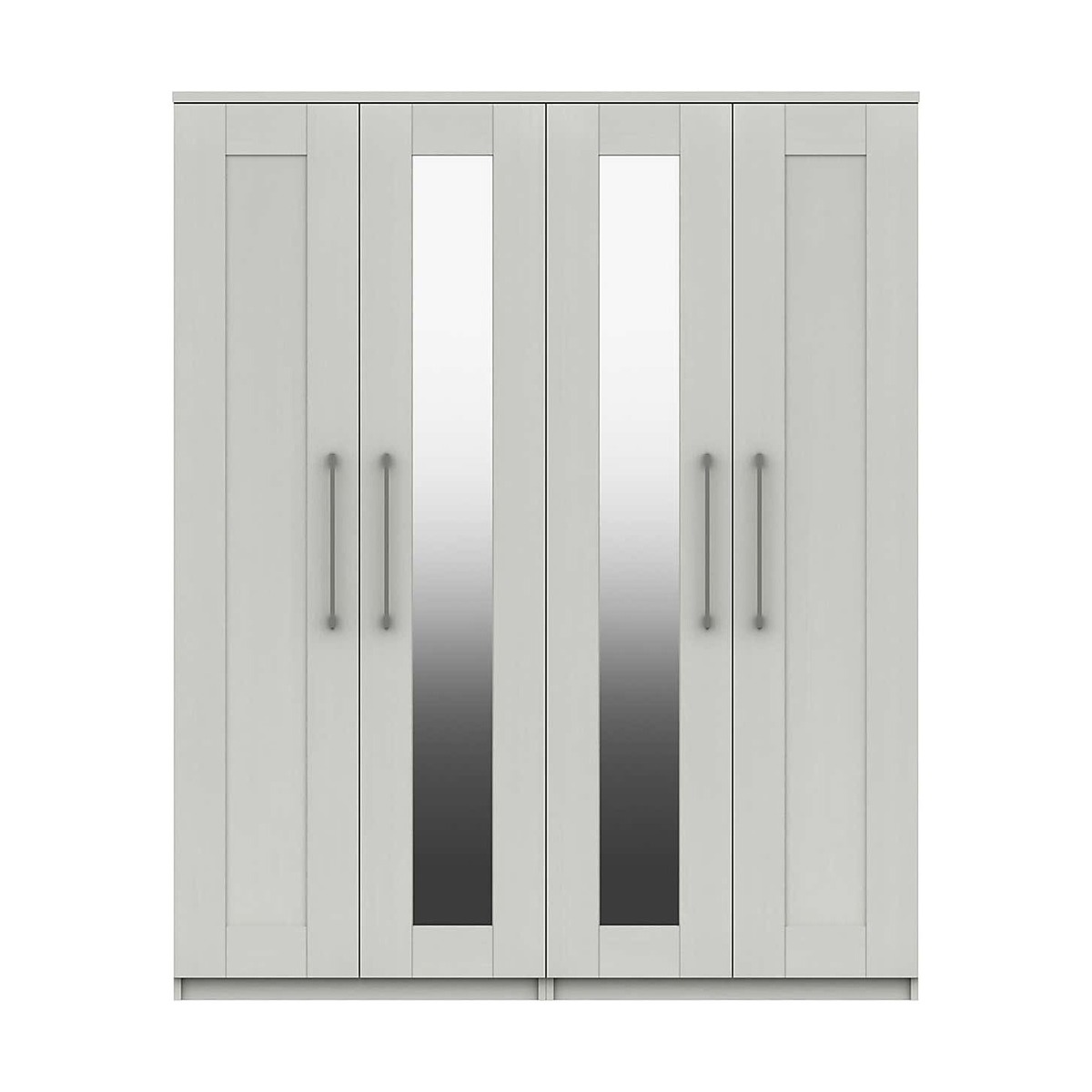 The stylish Ethan 4 Door Mirrored Wardrobe features profiled doors with shaker style metal handles. Including high quality components and multi-adjustable hinges this wardrobe isn't just practical but features a beautifully designed wood grain effect in a choice of trendy finishes, perfect for almost any bedroom.