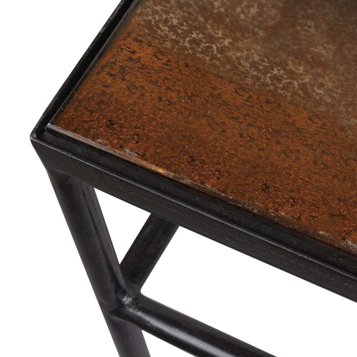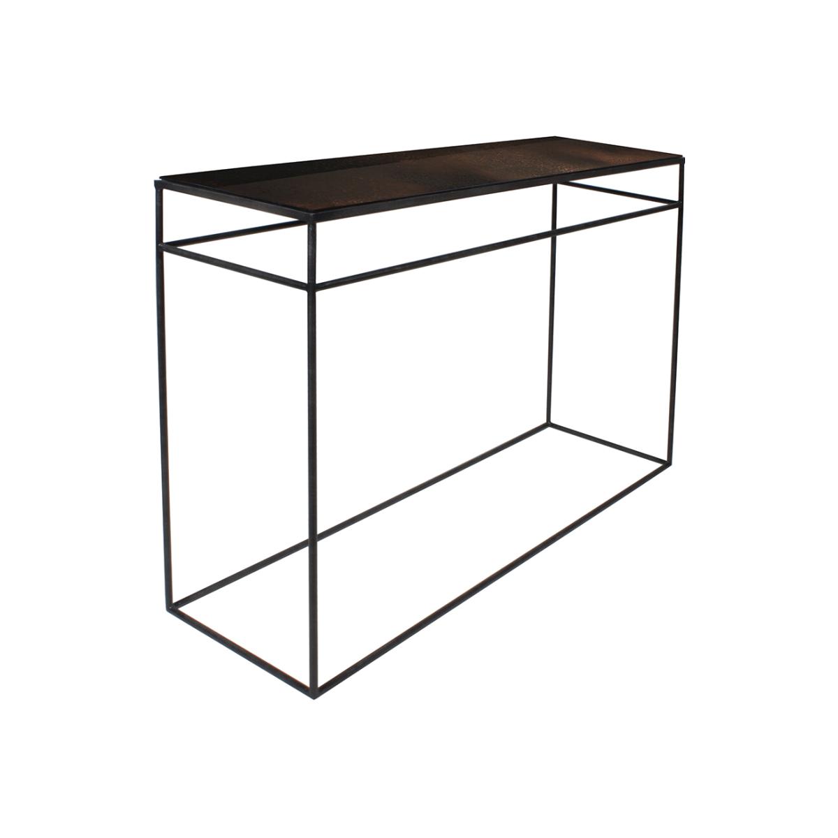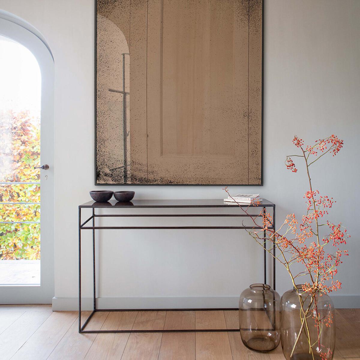 I love this aged console for its sleek yet industrial appeal, making it a versatile piece that works well in both contemporary and eclectic interiors. The bronze copper finish adds warmth and richness, making it a great accent in colour schemes that mix metals or earth tones. I recommend styling it with a mix of decorative objects like ceramics, books, or art prints to create visual interest. It's also practical as a statement piece in hallways or behind a sofa, and its minimalist frame offers plenty of surface space without feeling bulky. Pairing it with textured textiles or greenery can soften the look and bring in some natural elements for a balanced aesthetic.