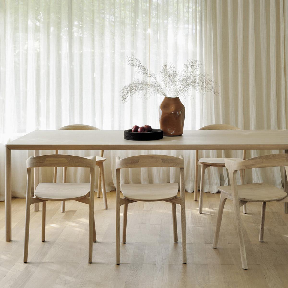 Elevate mealtimes with this. Air dining table from Ethnicraft. Designed by Alain Van Havre, it features an oak veneer tabletop with solid wooden legs. Simple and minimal, it’s available in three sizes.