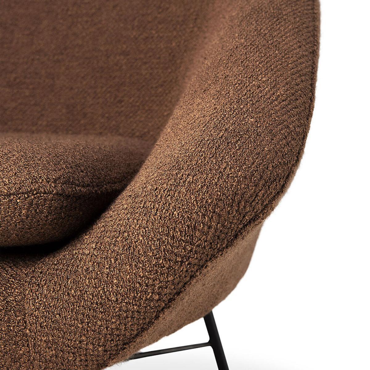 I love this piece for its modern yet cosy vibe, making it a versatile addition to both contemporary and eclectic interiors. The copper detail adds a touch of warmth and sophistication, especially when paired with neutral or earthy palettes. It works well as a statement accent in living rooms, bedrooms, or even stylish home offices. For styling, consider placing it alongside textures like velvet or leather, and add a complementary side table or throw to create a relaxed but curated look. Its curved silhouette makes it inviting, and the metallic base offers a subtle hint of shine without overpowering the overall aesthetic.