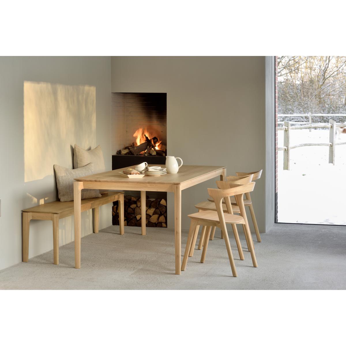 Bok Chair from Ethnicraft is an elegant piece of furniture with an airy form and a solid construction. Its timeless design is complemented by carefully crafted details, ensuring both comfort and lasting aesthetics. It is a perfect match for the corresponding Bok dining table, and thanks to its thoughtful craftsmanship, you can enjoy this chair for many years to come.