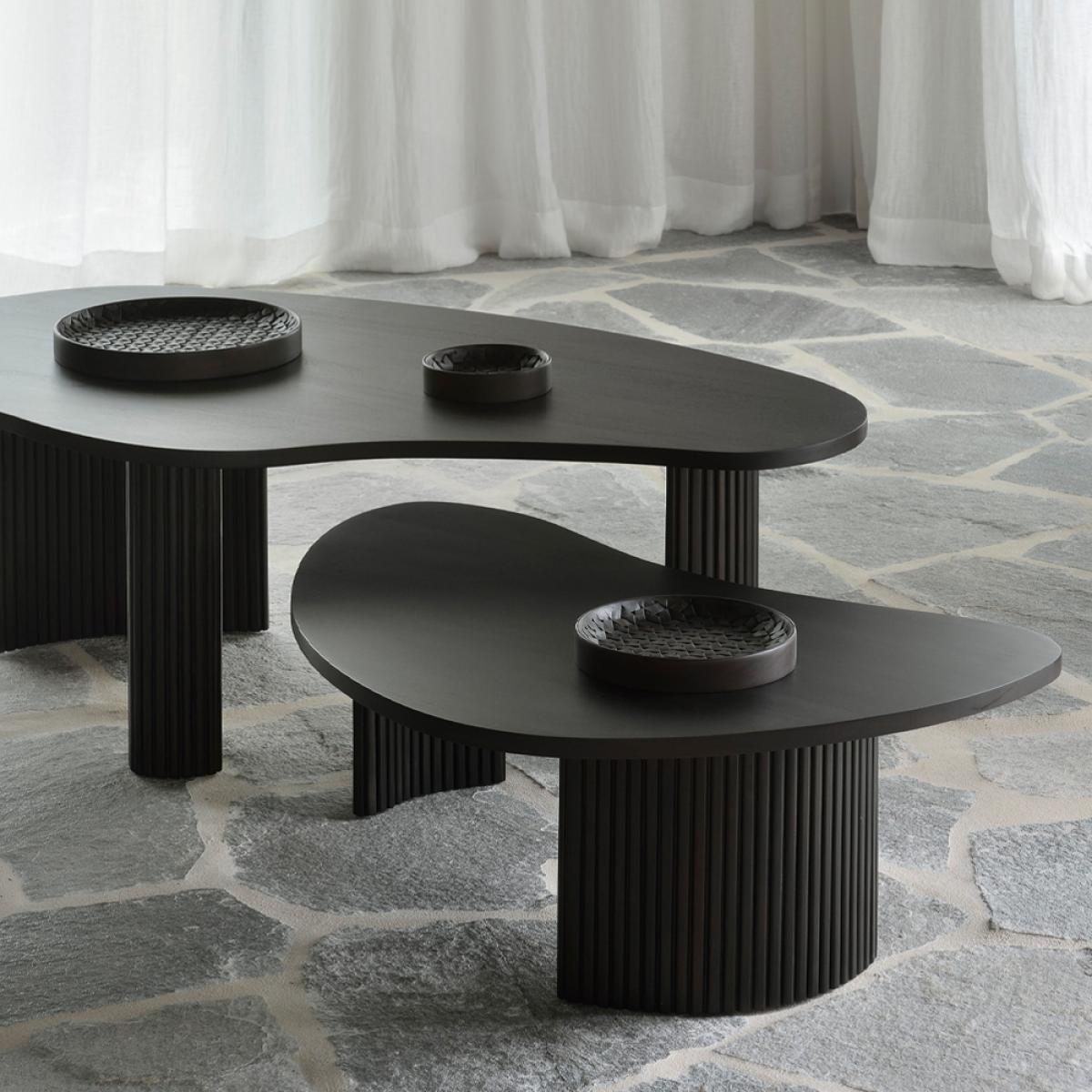 Boomerang coffee table from Ethnicraft combines a fascinating pebble-like top with an elegant base. Available in two different sizes that can be used separately or together, making it a flexible and captivating piece for the home. Perfect for creating an inviting and stylish living room. Easily adapts to various interiors and adds a unique touch that's sure to spark conversation on any occasion.