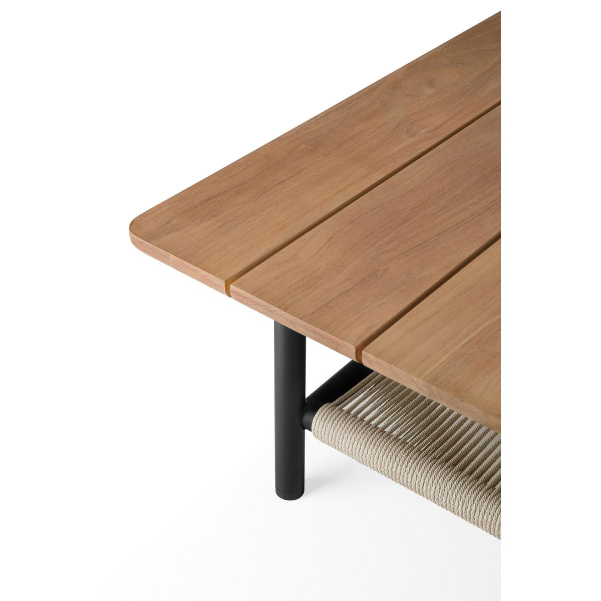 Corbey Outdoor coffee table from Ethnicraft combines a fine teak top with an aluminum base for excellent outdoor durability. The table’s rectangular shape provides a practical surface for drinks and snacks during garden gatherings. Perfect for complementing your patio with elegance and functionality.