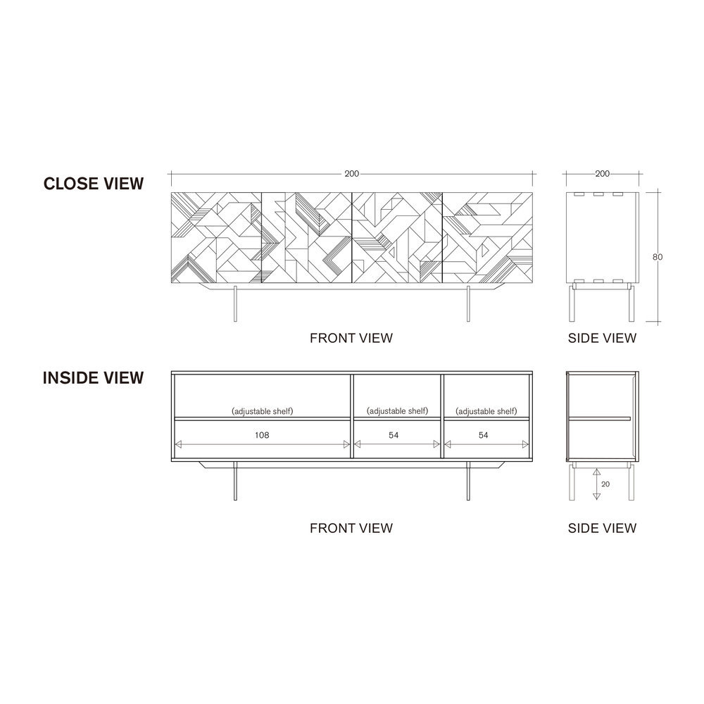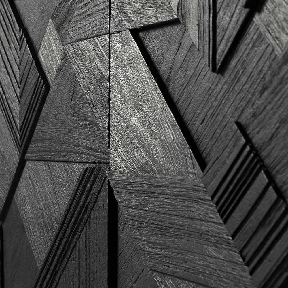 I love this sideboard for its bold geometric design and striking black teak finish, which instantly adds a contemporary edge to any interior. It works especially well in modern or industrial spaces, where its dark tones can be contrasted with lighter walls and accessories. Practical styling tips include pairing it with minimalist tableware or decorative objects to allow its textured surface to stand out, and placing it in a living room or dining area where its spacious storage can keep clutter at bay. Its sizeable form makes it a versatile statement piece that combines function with visual interest, perfect for making a stylish impact while remaining practical.