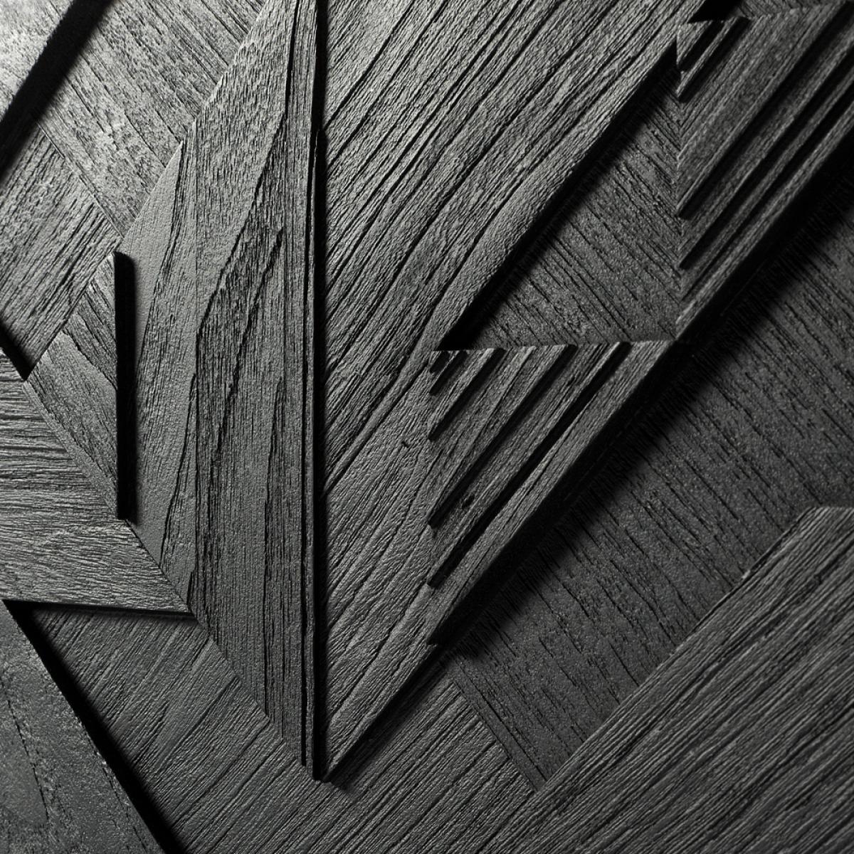 Graphic sideboard from Ethnicraft combines a creative pattern with mathematical precision, where the triangle takes center stage. This unique piece features multiple layers to create impressive depth and dynamism. Made of black lacquered teak, this sideboard is an intriguing addition to any home seeking something beyond the ordinary. Inspiring design and material choices give the piece distinctive character and presence.