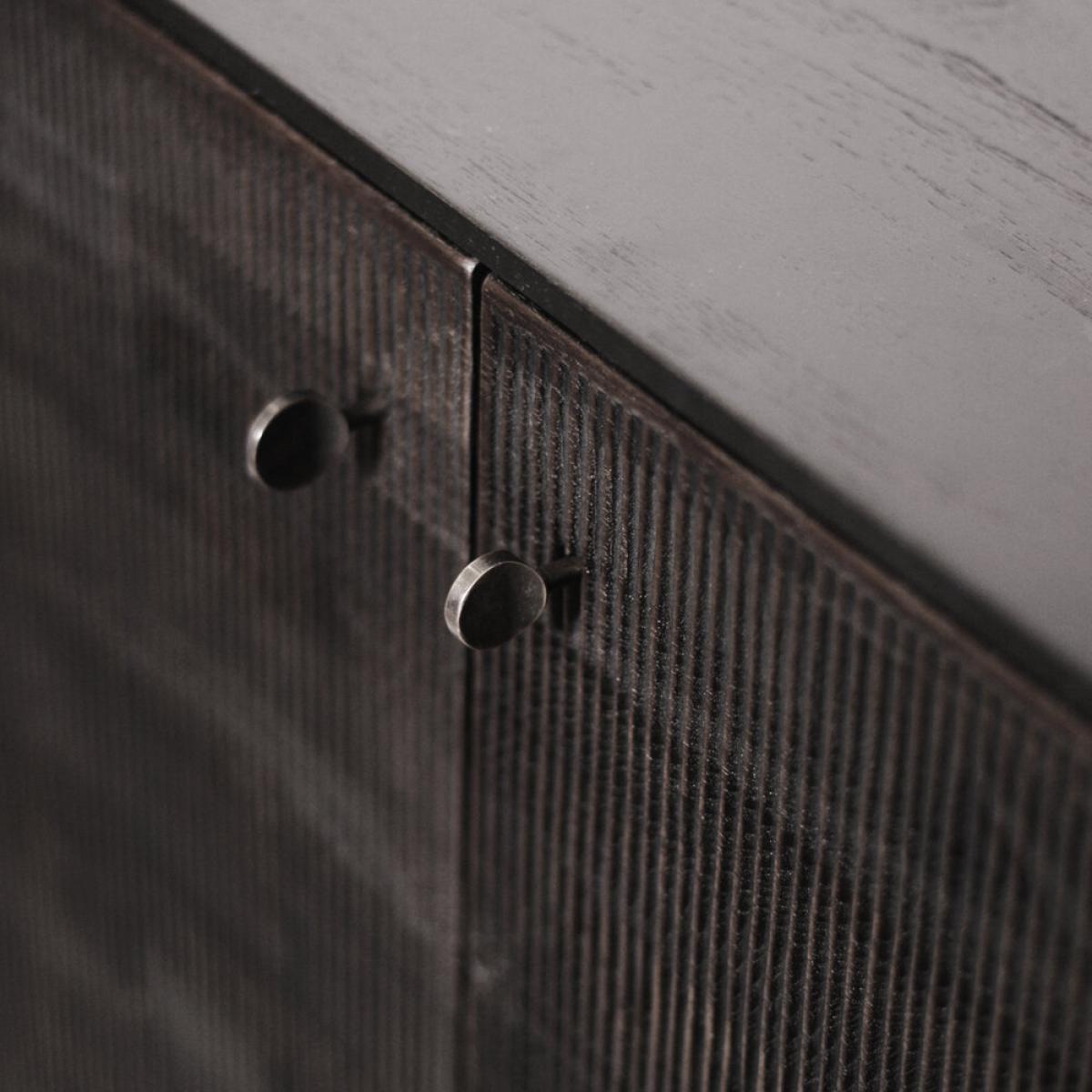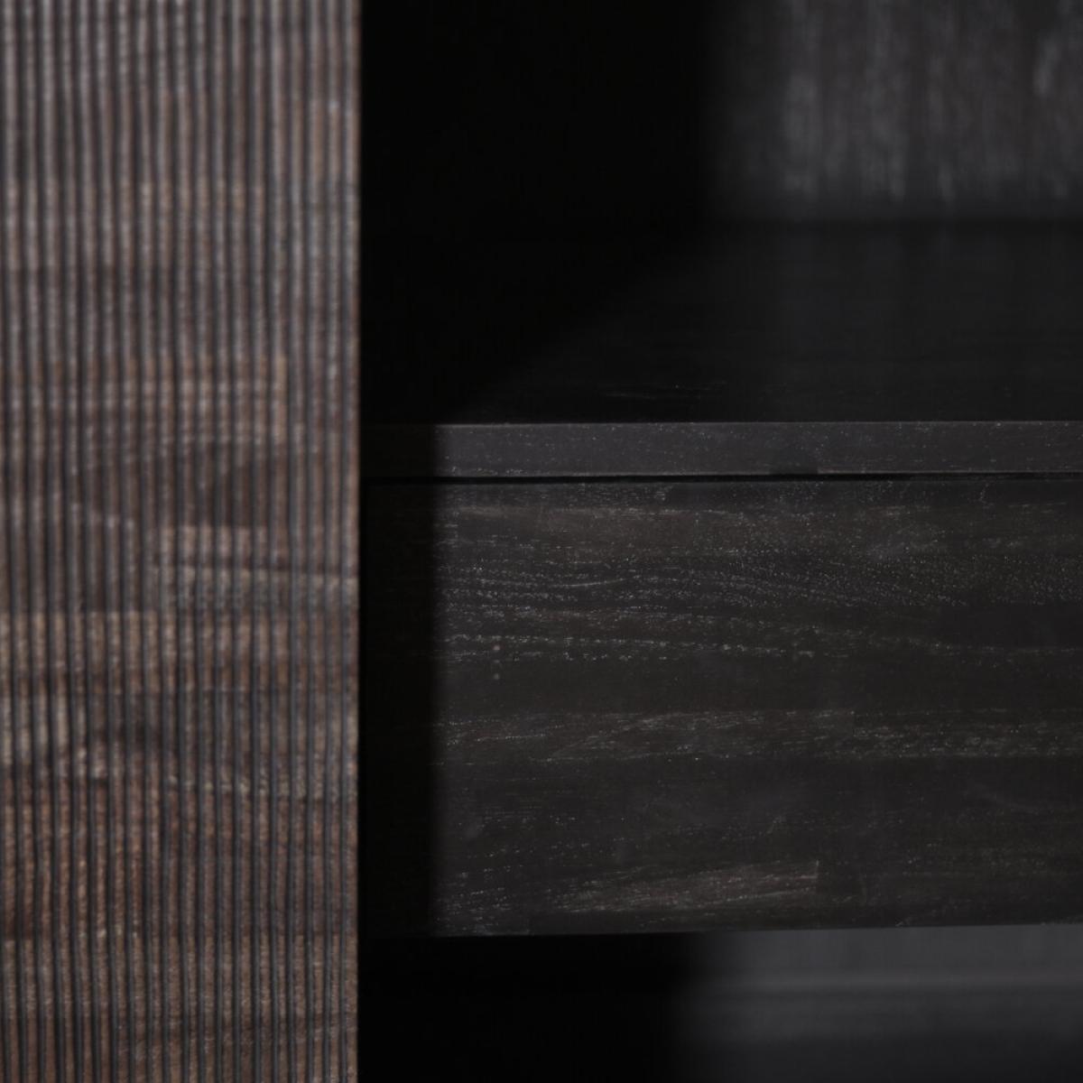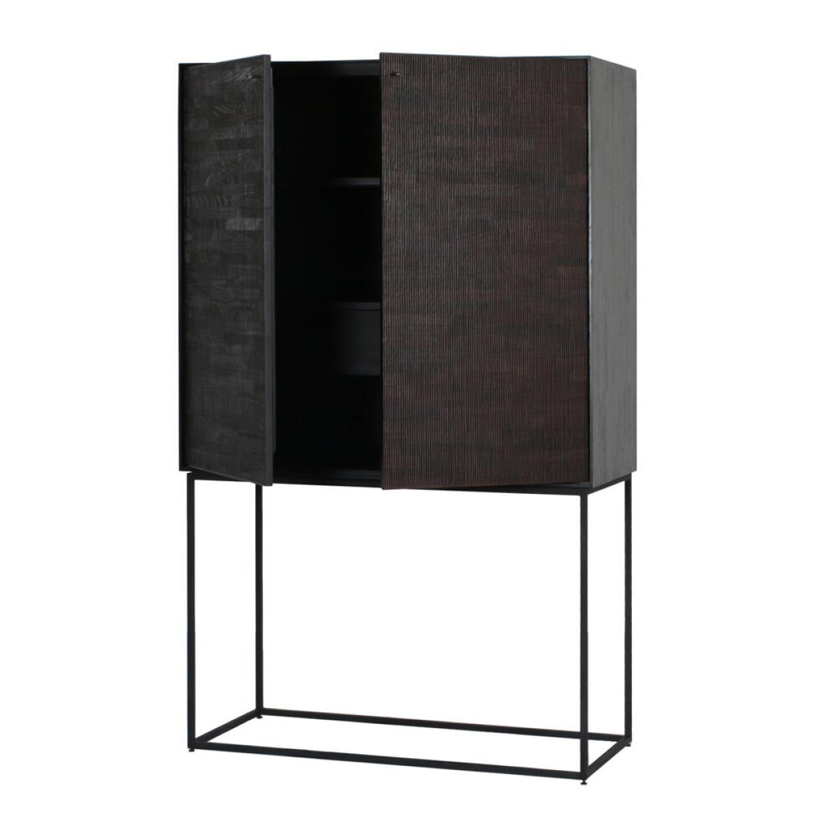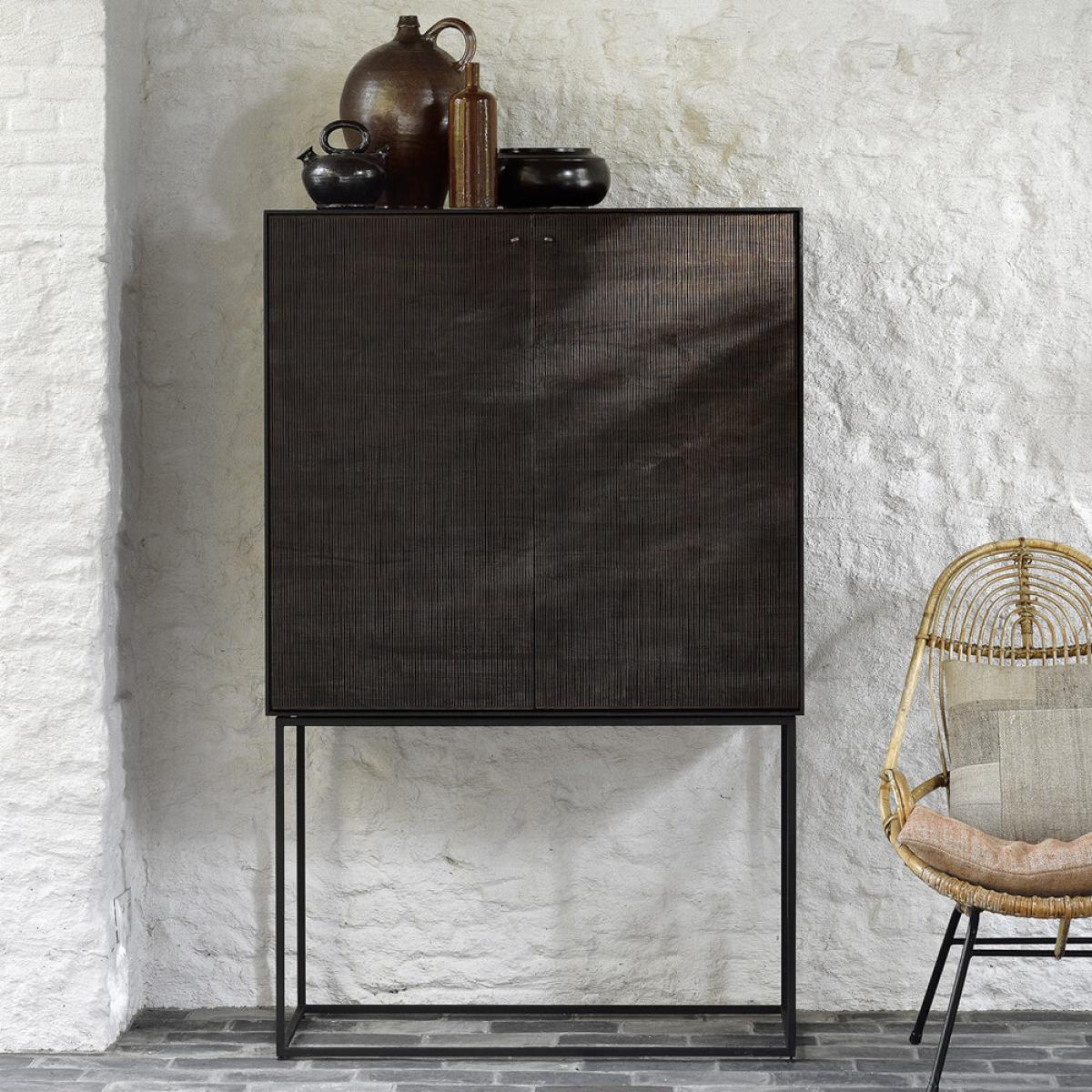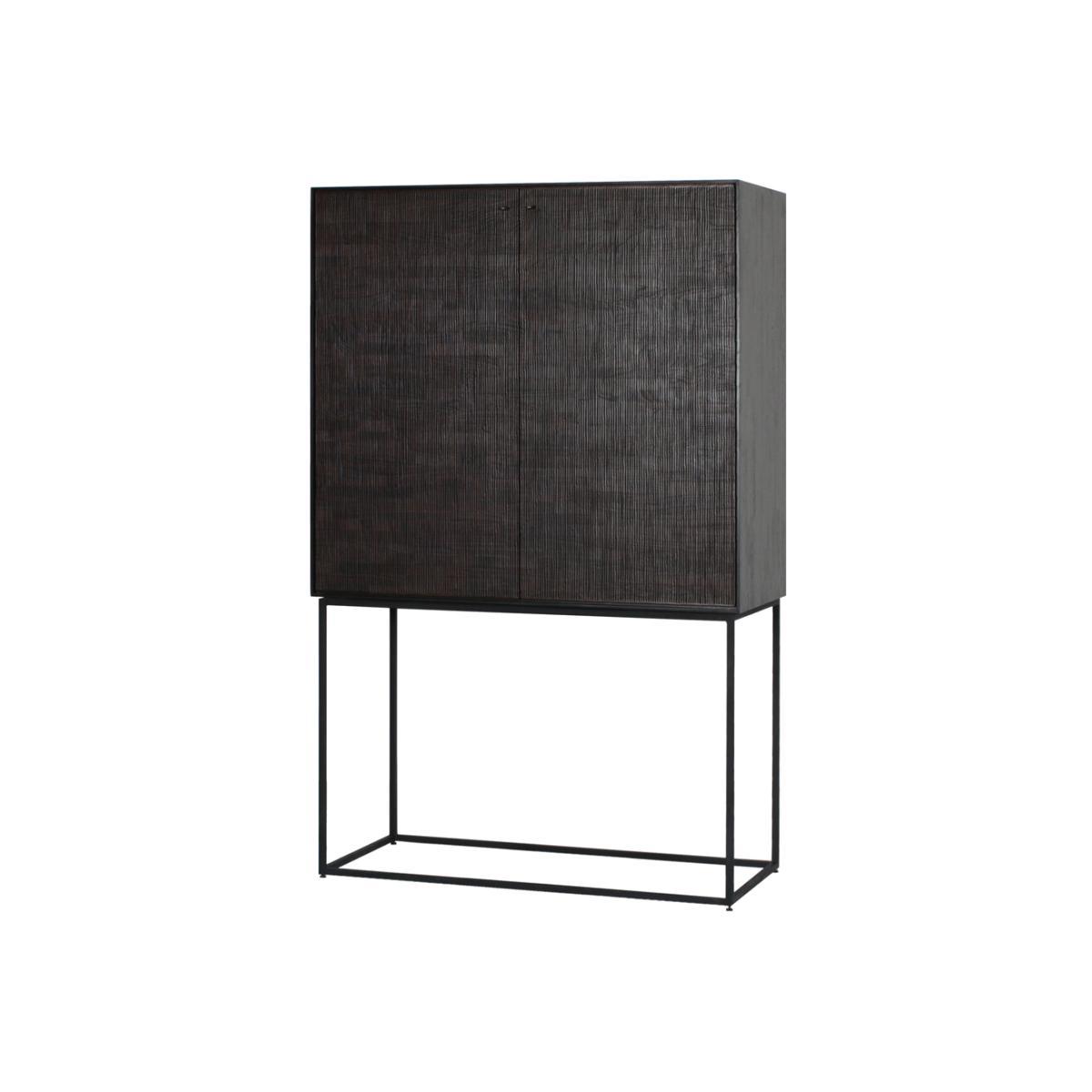 Transform your space with this storage cupboard from Ethnicraft. Made from solid teak with black metal legs, it includes two doors with a subtle groove design and two inside drawers for storing. Key features: * Material: teak, metal * Dimensions: H162xW102xD45cm * Features 2 doors and 2 inside drawers * Grooved design * Dark varnish * Please note, due to the handmade nature each piece is unique * For regular dusting use a dry cloth. For cleaning or in case of a spill, use a damp cloth and natural soap, do not use abrasive products when cleaning