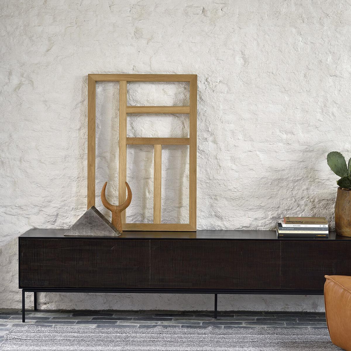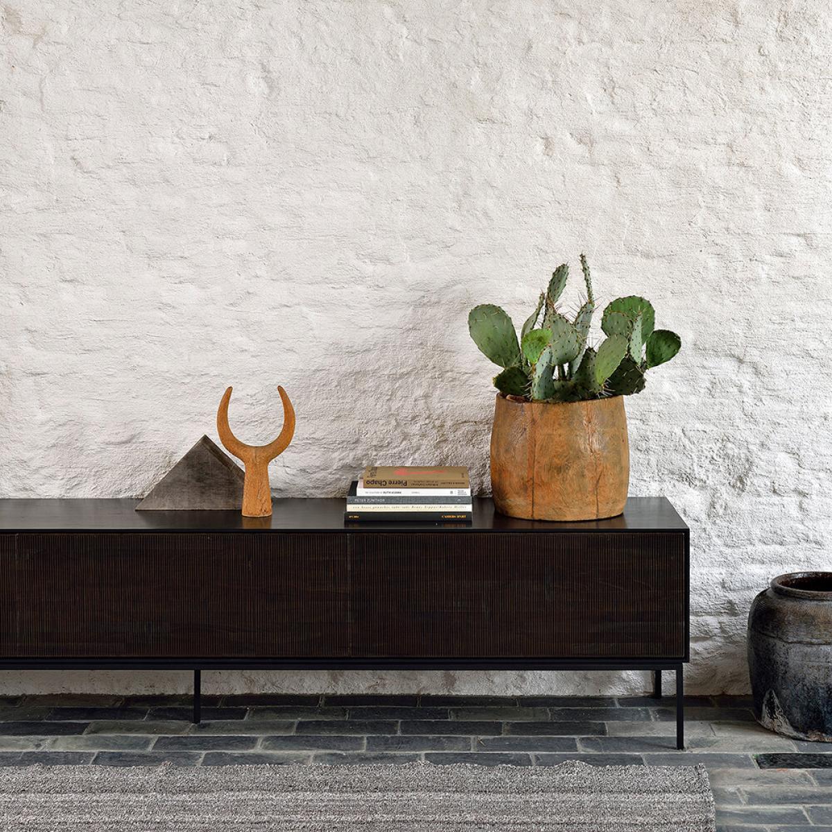 Give your living room a soulful feel with this Grooves TV cabinet from Ethnicraft. Made from solid teak with hand carved detailing, it features plenty of storage space for your essentials and conceals those unsightly cables.