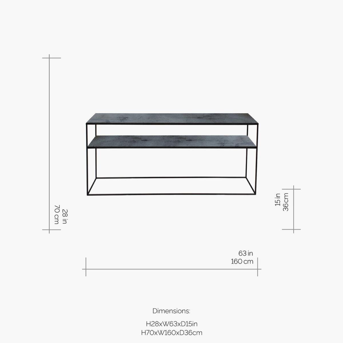 This sofa console is a great piece for introducing a touch of industrial elegance to a variety of interiors. Its aged charcoal finish adds a rugged, vintage feel, making it suitable for both contemporary spaces and more eclectic, rustic settings. I love using it as a hallway table to display decorative objects like vases or books, or even behind a sofa for added surface space. To style it effectively, consider contrasting its dark tones with lighter elements, such as soft textiles or greenery, to prevent the look from becoming too heavy. Its slim profile makes it versatile for narrow wall spaces, and the open shelving provides practical storage or display options. Overall, it’s a functional statement piece that combines style with practicality.