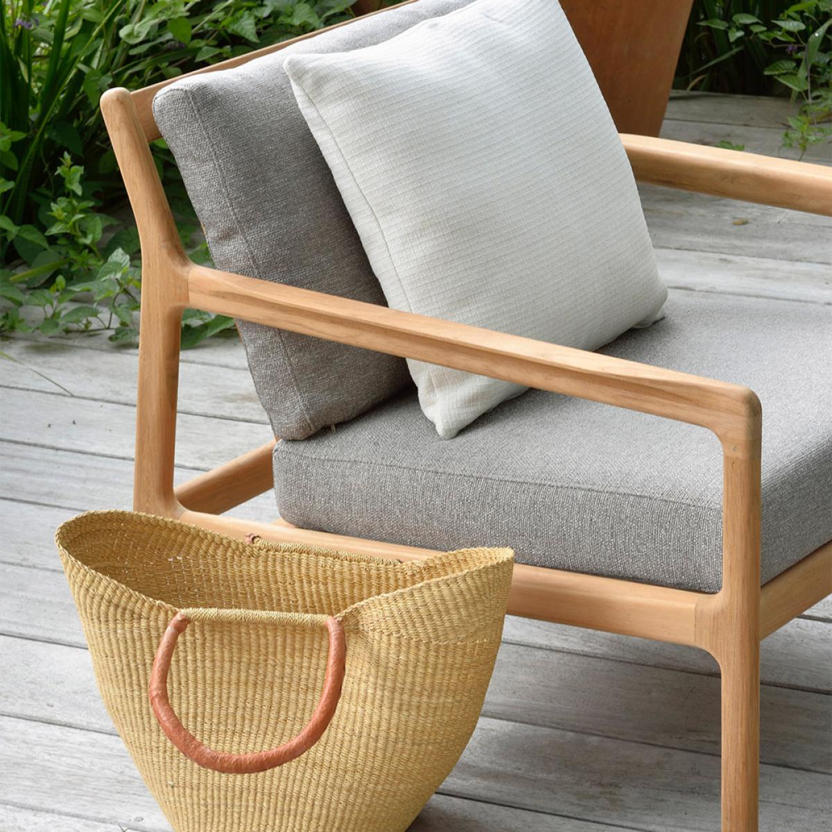 The Jack outdoor lounge armchair teak from Ethnicraft is an elegant and modern lounge chair for the garden. The comfortable cushions are made from a quick-drying foam filling with a water-repellent and UV-resistant polypropylene fabric. Additionally, the back of the cushions is designed to let excess water through. The untreated teak is maintenance-free and will over time develop a beautiful grey patina. Feel free to combine the lounge armchair with the sofa in the same series to create a complete lounge group for your patio.