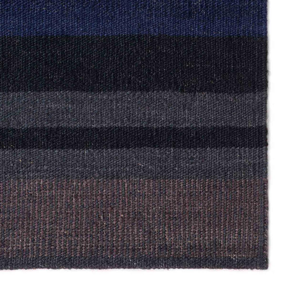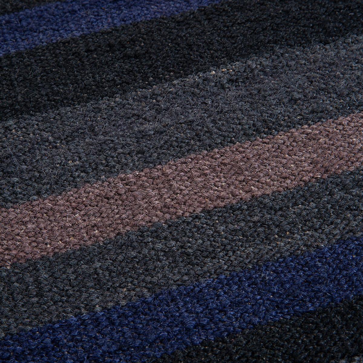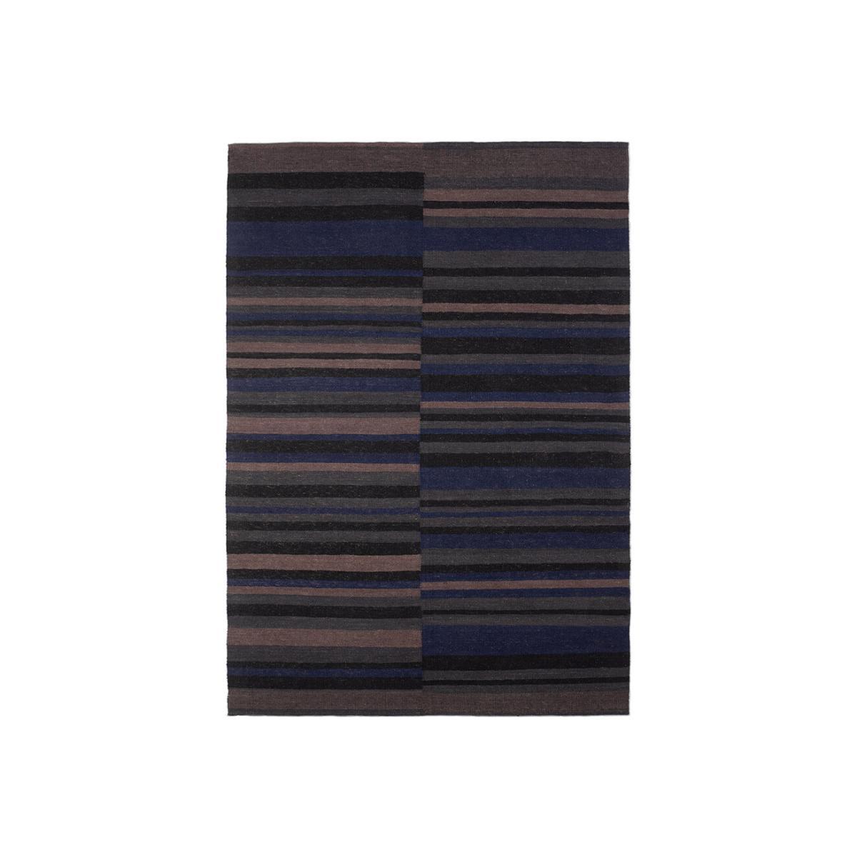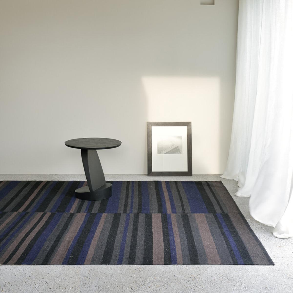 Treat your toes to luxury and soften hard floors with this Kilim rug from Ethnicraft. Handwoven from 100% sheep wool using traditional methods, this durable rug features a stylish stripe design in blue, grey, and brown shades.