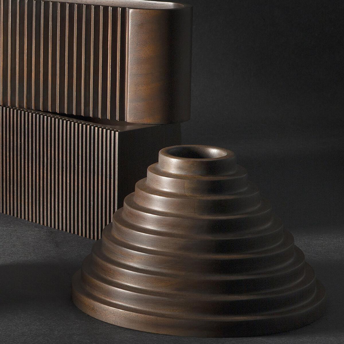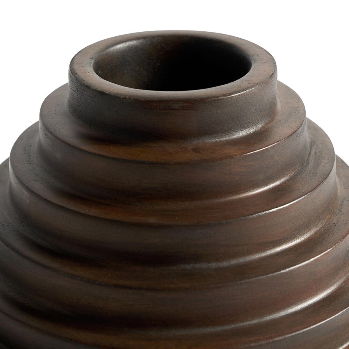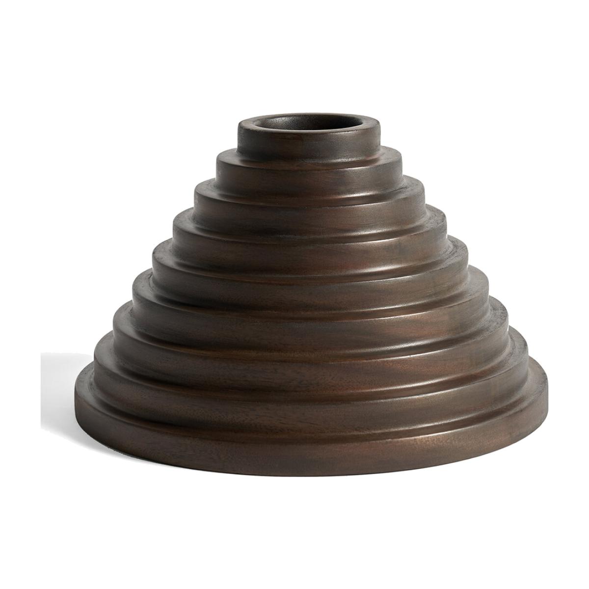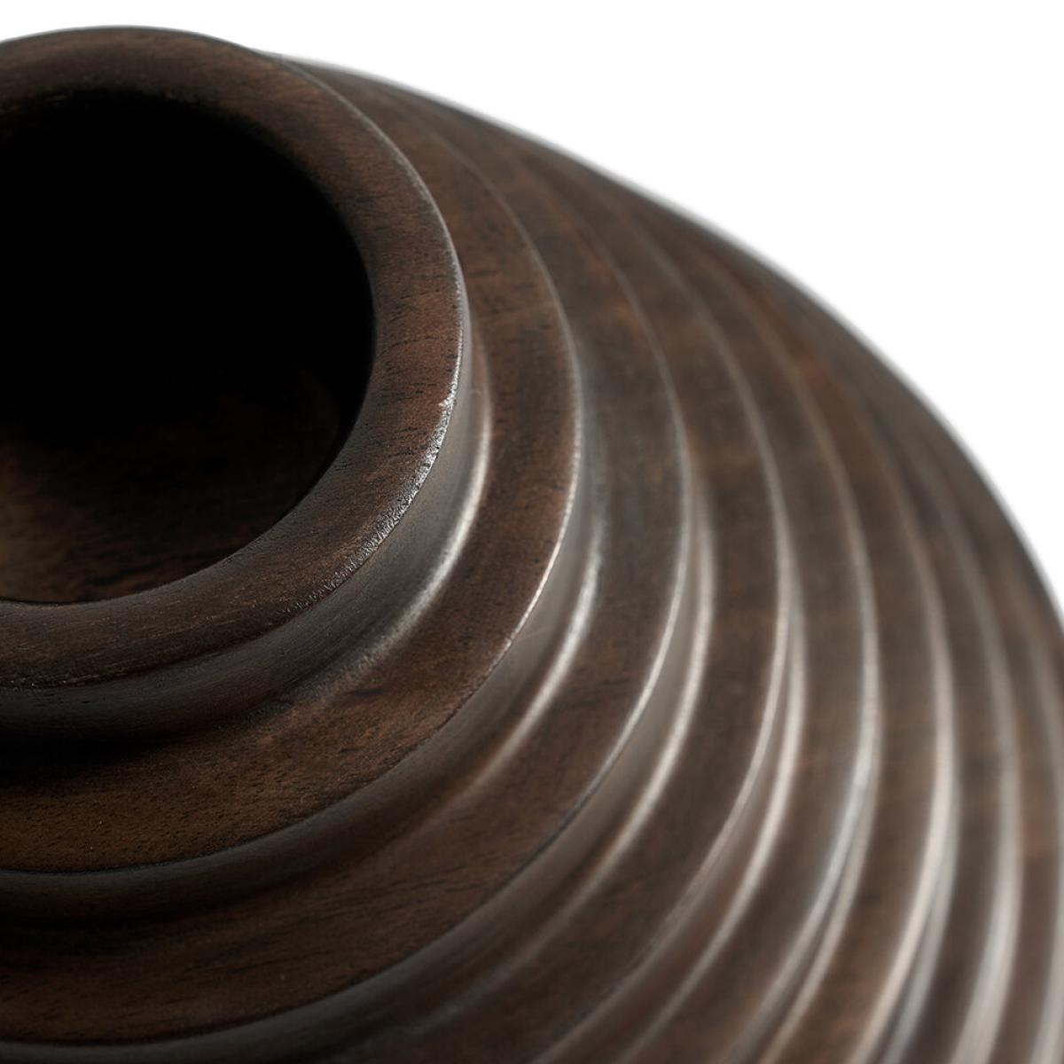 I love this piece for its bold, sculptural form that makes a statement in any space. Its tiered design and rich mahogany tone lend warmth and texture, making it versatile enough to complement both contemporary and more traditional interiors. It works particularly well as a standalone accent on a console table or sideboard, or as a striking centrepiece in an open shelving display. To style it effectively, consider pairing it with minimalist accessories or contrasting materials like metal or glass to let its shape and colour really stand out. A practical tip would be to position it where it can be admired from multiple angles, ensuring the layered contours become a focal point in the room.