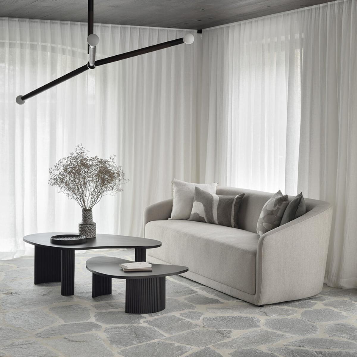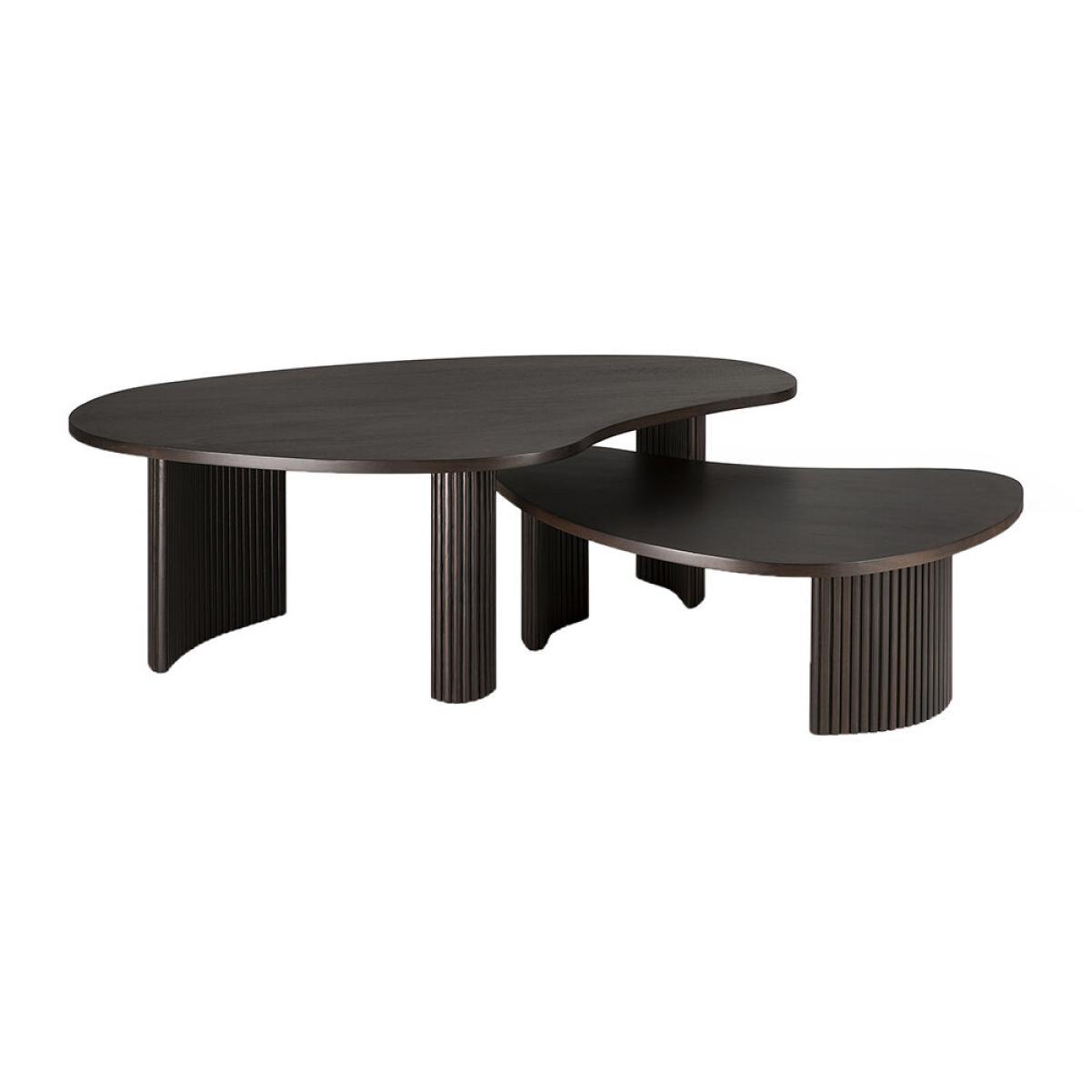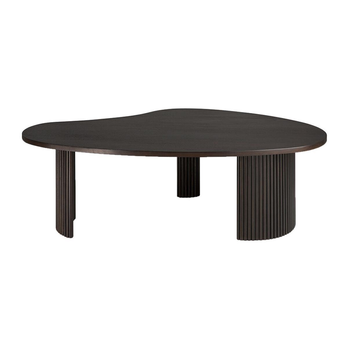 Complete your living room with this Boomerang coffee table from Ethnicraft. With a playful pebble-shaped tabletop and folded base, this coffee table will make a well-proportioned addition to any space. Pair with more accessories from Ethnicraft to complete the look. Key features: * Material: mahogany * Dimensions: H40xW125xD75cm * Dark brown colour * Pebble shaped tabletop * Designed by Alain van Havre * Please note, due to the handmade nature and natural materials used, some differences may occur