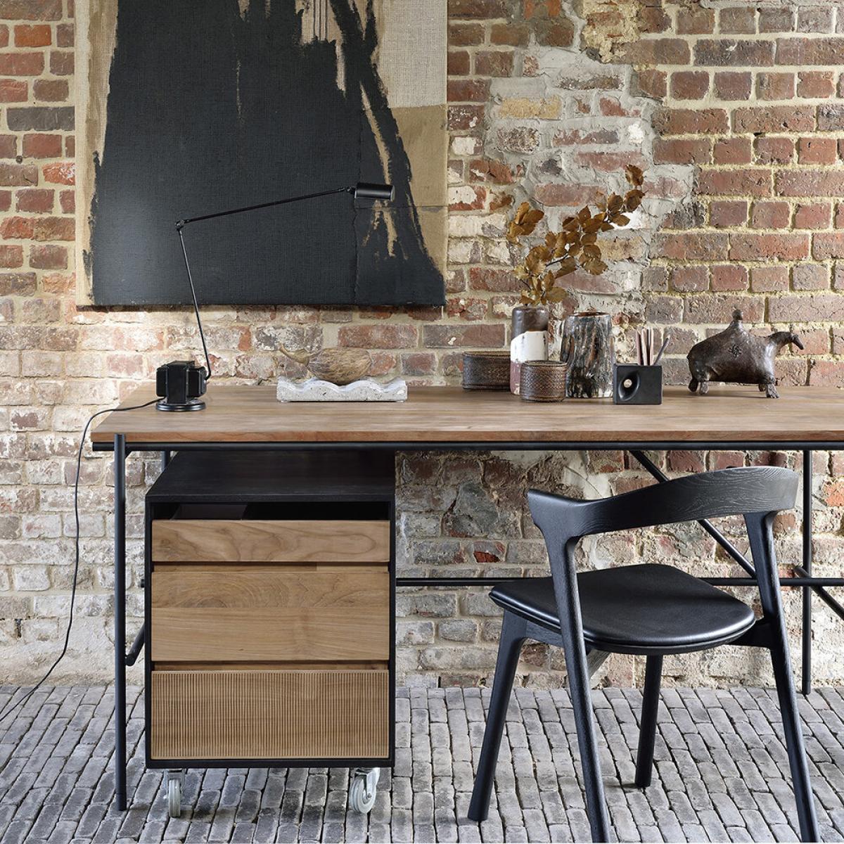 Add a touch of style to your home office with this Oscar desk from Ethnicraft. Made from FSC certified solid teak with black metal legs, this sleek design will give your home an industrial touch.