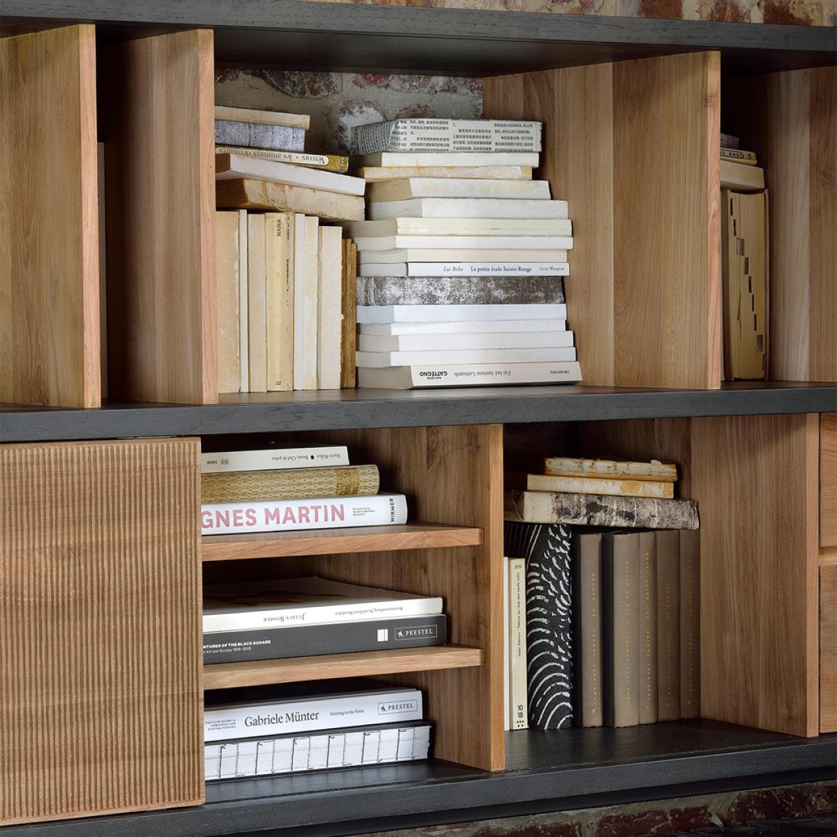 Oscar sideboard from Ethnicraft combines function and aesthetics with its solid teak. Sliding doors provide practical storage and unique carved details make each piece a work of art. Perfect for displaying personal items or organizing documents.