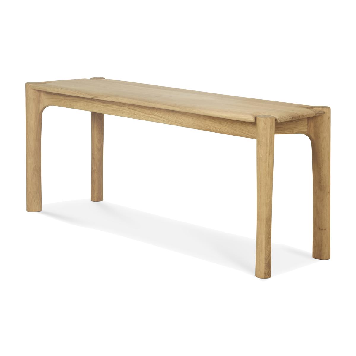 PI bench 126x35 cm is a handmade piece of furniture from Ethnicraft, designed by Alain van Havre. Made of robust wood, this bench preserves the strength, curves, and lines of nature. Its unique shape and polished, imperfect finish make it an interesting addition to any room. Works excellently both as a complement to the PI dining table and as a standalone bench in a hallway.