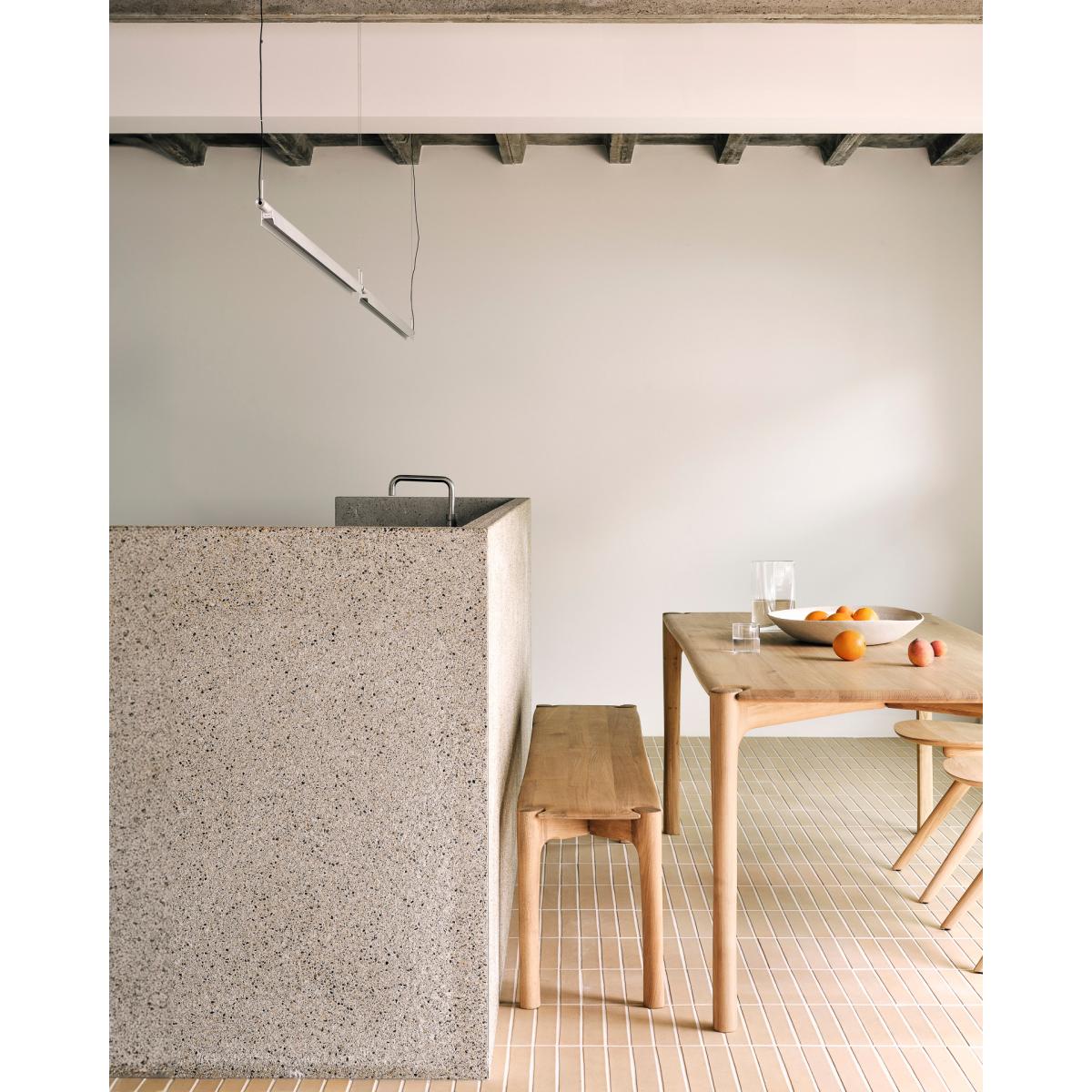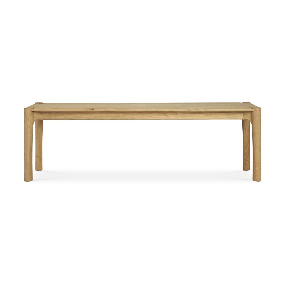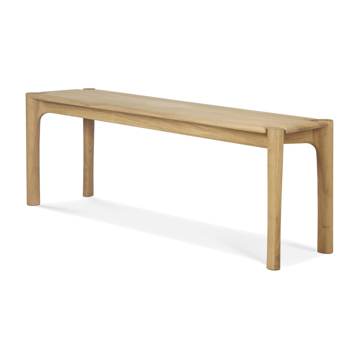 The 'PI bench 146x35 cm is manufactured by Ethnicraft and designed by Alain van Havre. This bench in the PI series celebrates nature's design by preserving the wood's strength, curves, and lines. Each PI product is handmade to respect the unique character of the wood. The bench pairs excellently with the PI dining table but also adds character to a hallway.