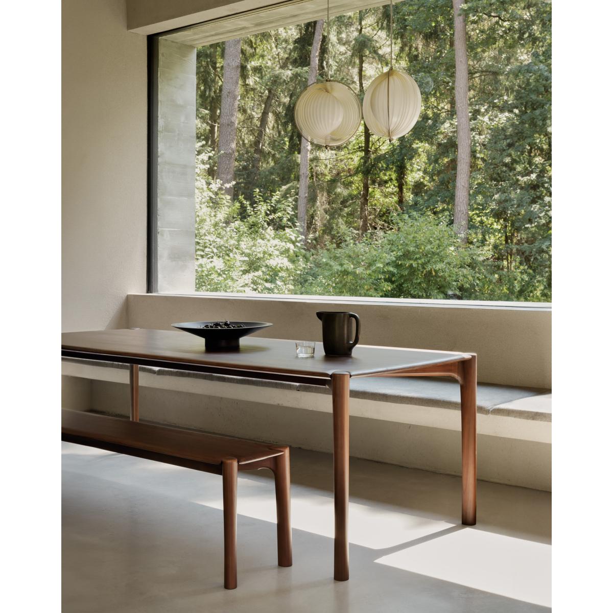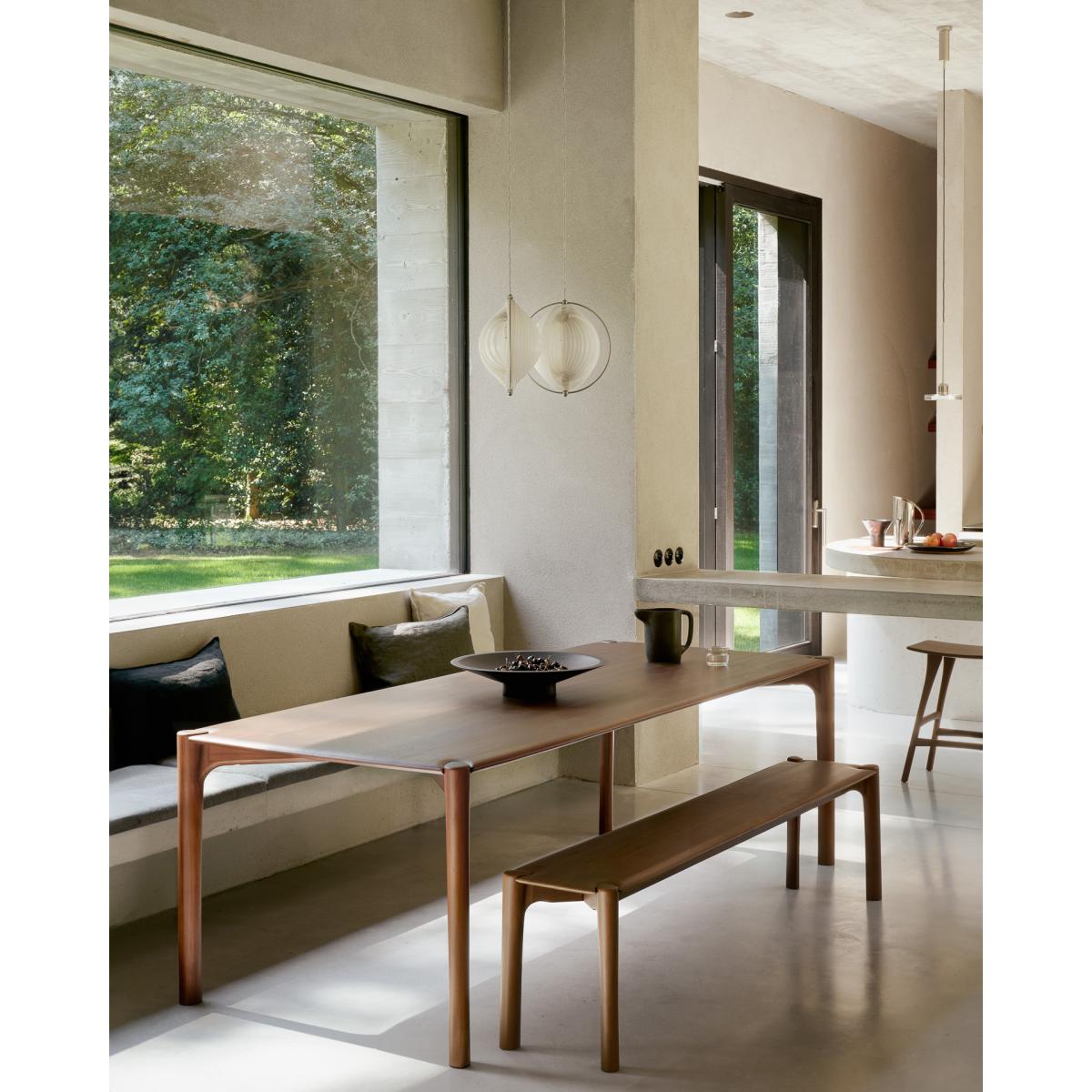 PI bench 186x35 cm is made by Ethnicraft and designed by Alain van Havre. This bench in the PI series celebrates nature's design by preserving the wood's strength, curves, and lines. Each PI bench is handmade to honor the unique character of the wood. The bench pairs excellently with the PI dining table, but also adds character to a hallway.