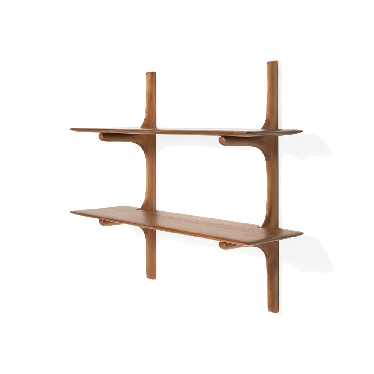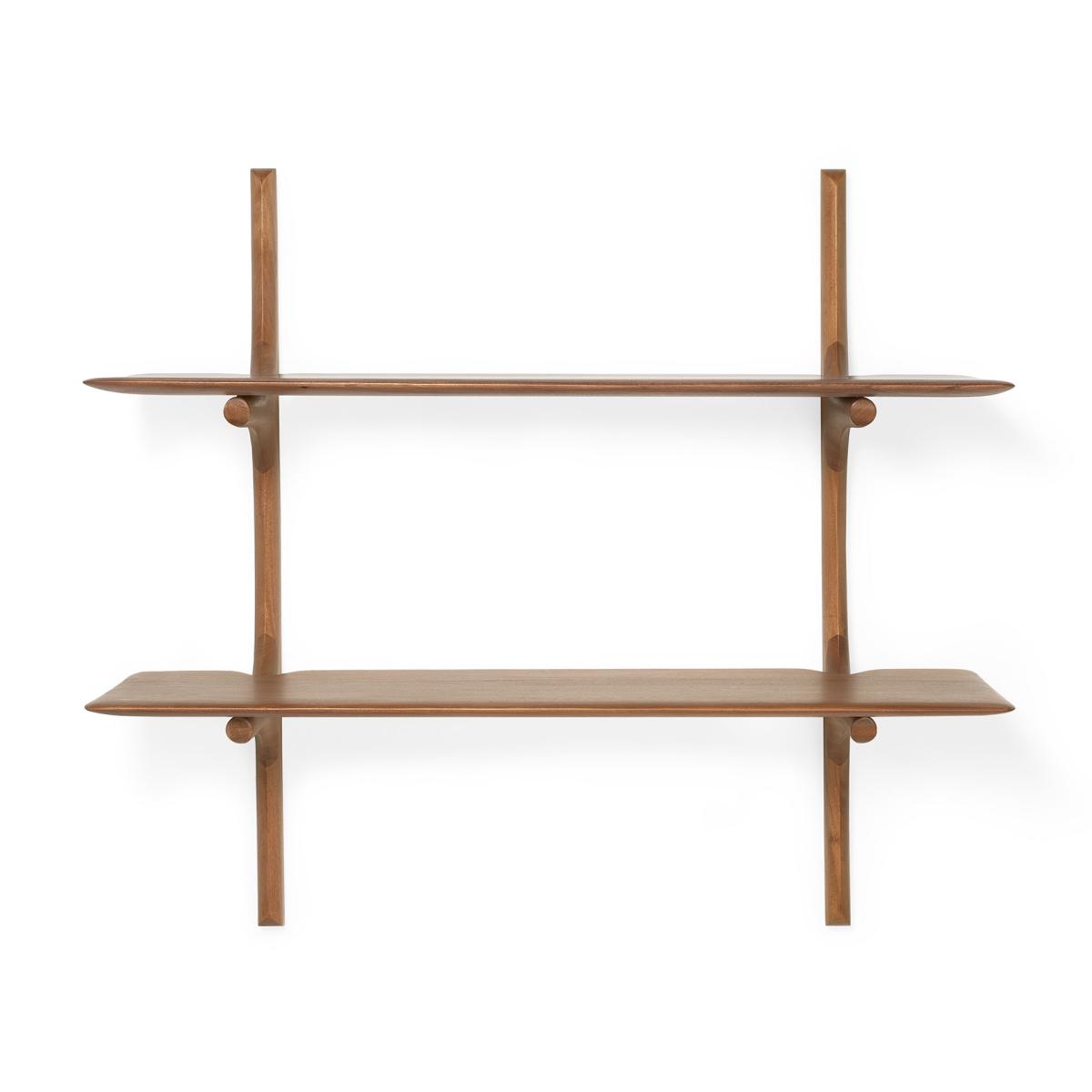 PI wall shelf 91 cm by Ethnicraft is made of wood and highlights the organic forms of nature with its soft lines and unique details. Each shelf is hand-finished to preserve the material's character and create a harmonious balance between function and aesthetics. Perfect for displaying personal items, books, or decorations while giving the room a clean and natural feel. A timeless solution for storage and interior decor.