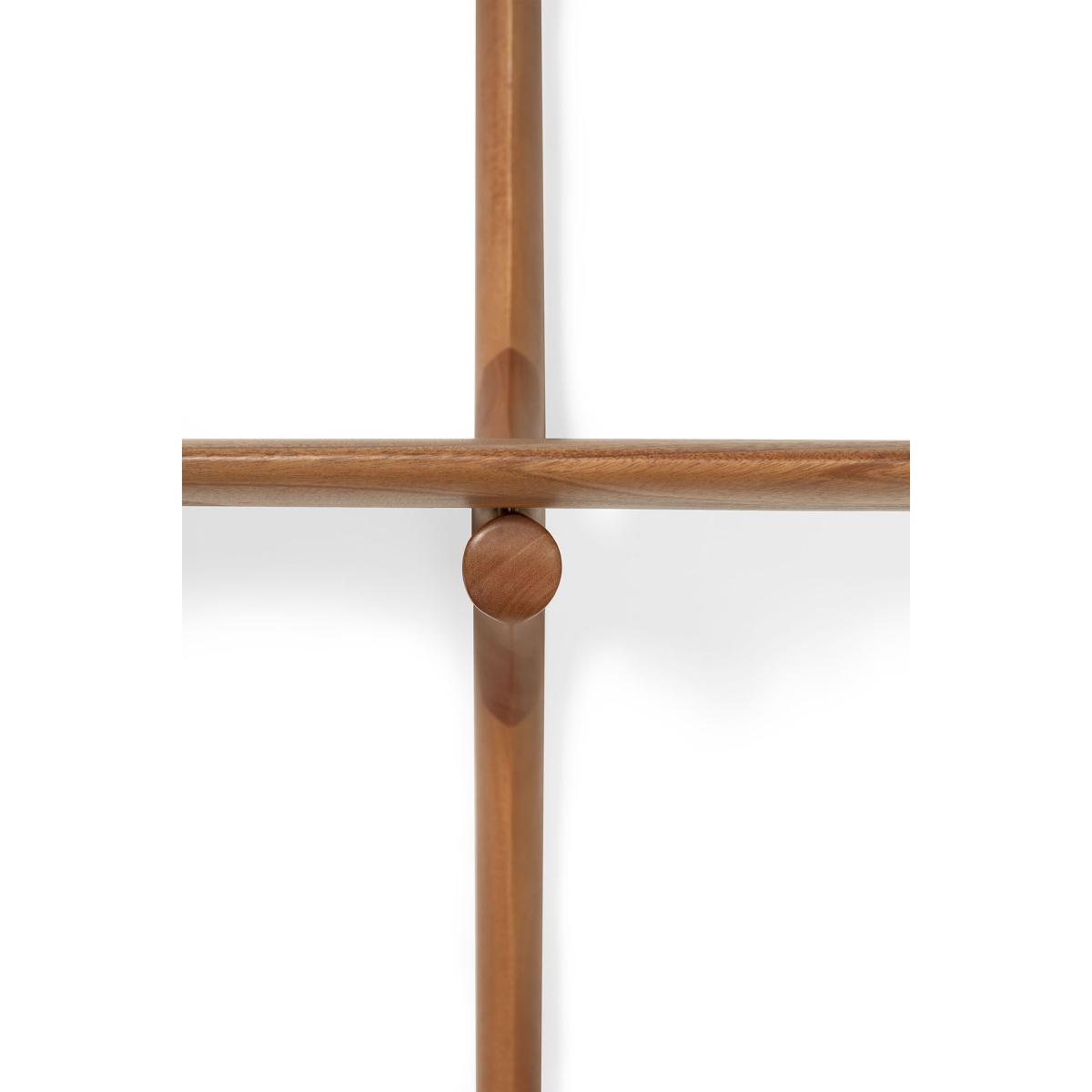 The Ethnicraft PI wall shelf is a versatile piece that combines simplicity with natural beauty, making it a great addition to various interior styles. I love its minimalist design and warm varnished mahogany finish, which works particularly well in Scandi, mid-century modern, or even boho interiors. It’s perfect for displaying books, plants, or small decorative objects, adding practical storage without clutter. For styling tips, consider contrasting it with lighter walls to make the wood stand out, or use it alongside other wood tones for a cohesive look. Its open structure also lends itself well to creating visual interest on bare walls while maintaining a clean and organised appearance.