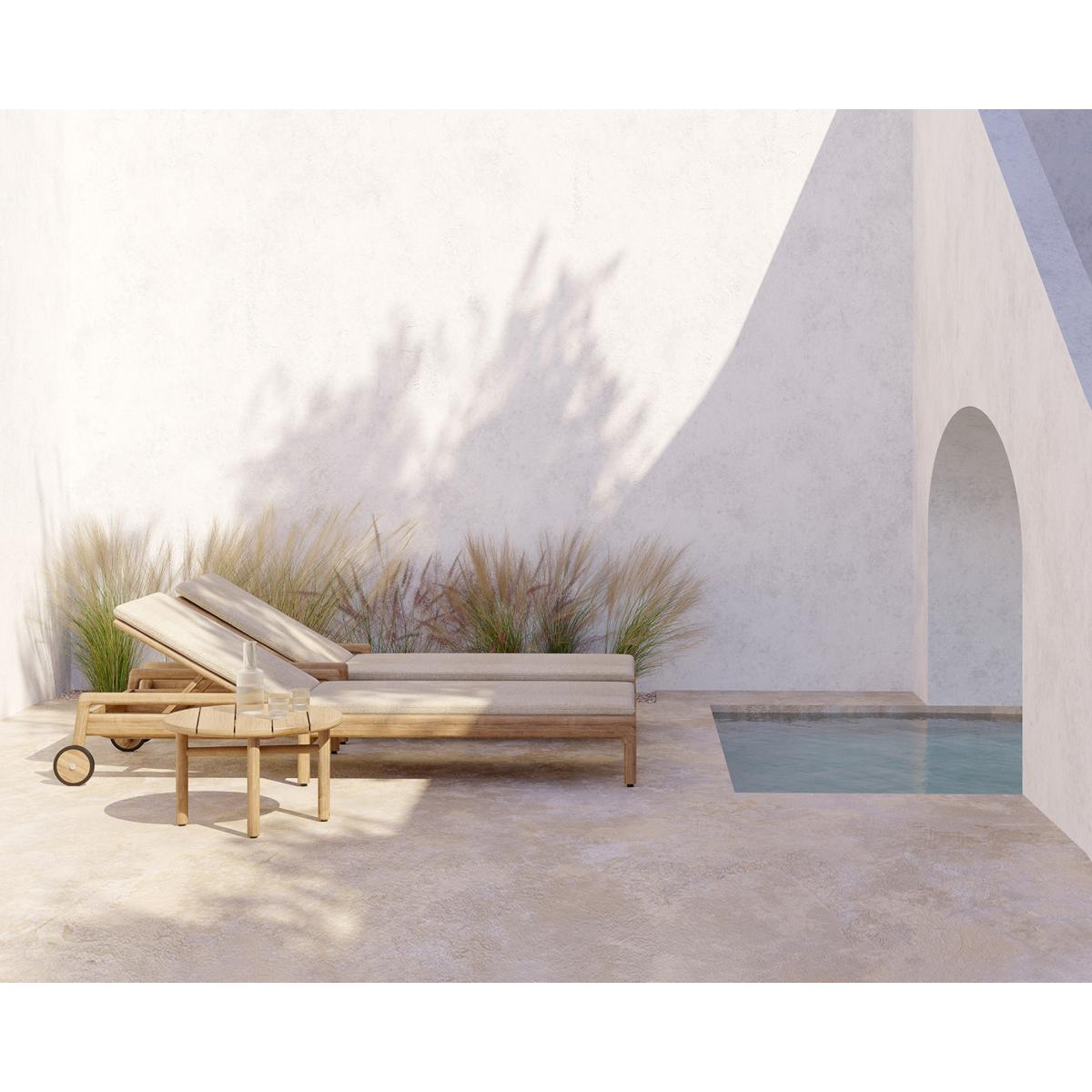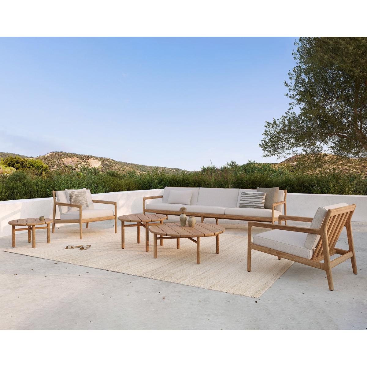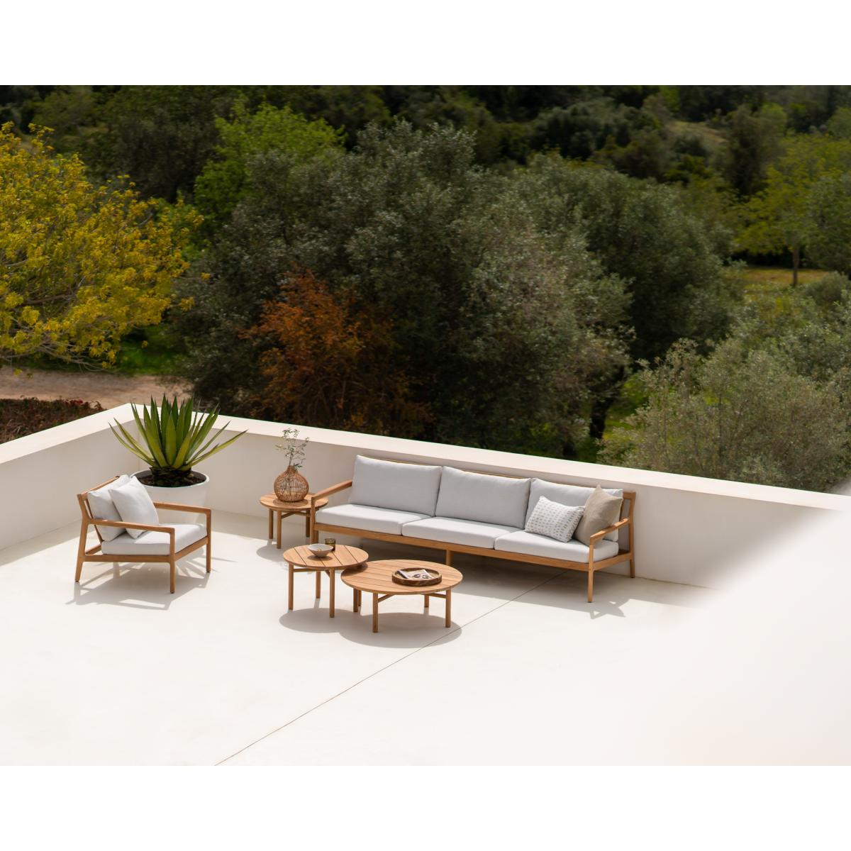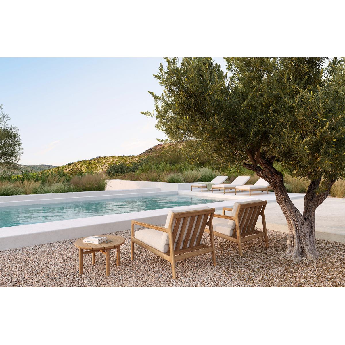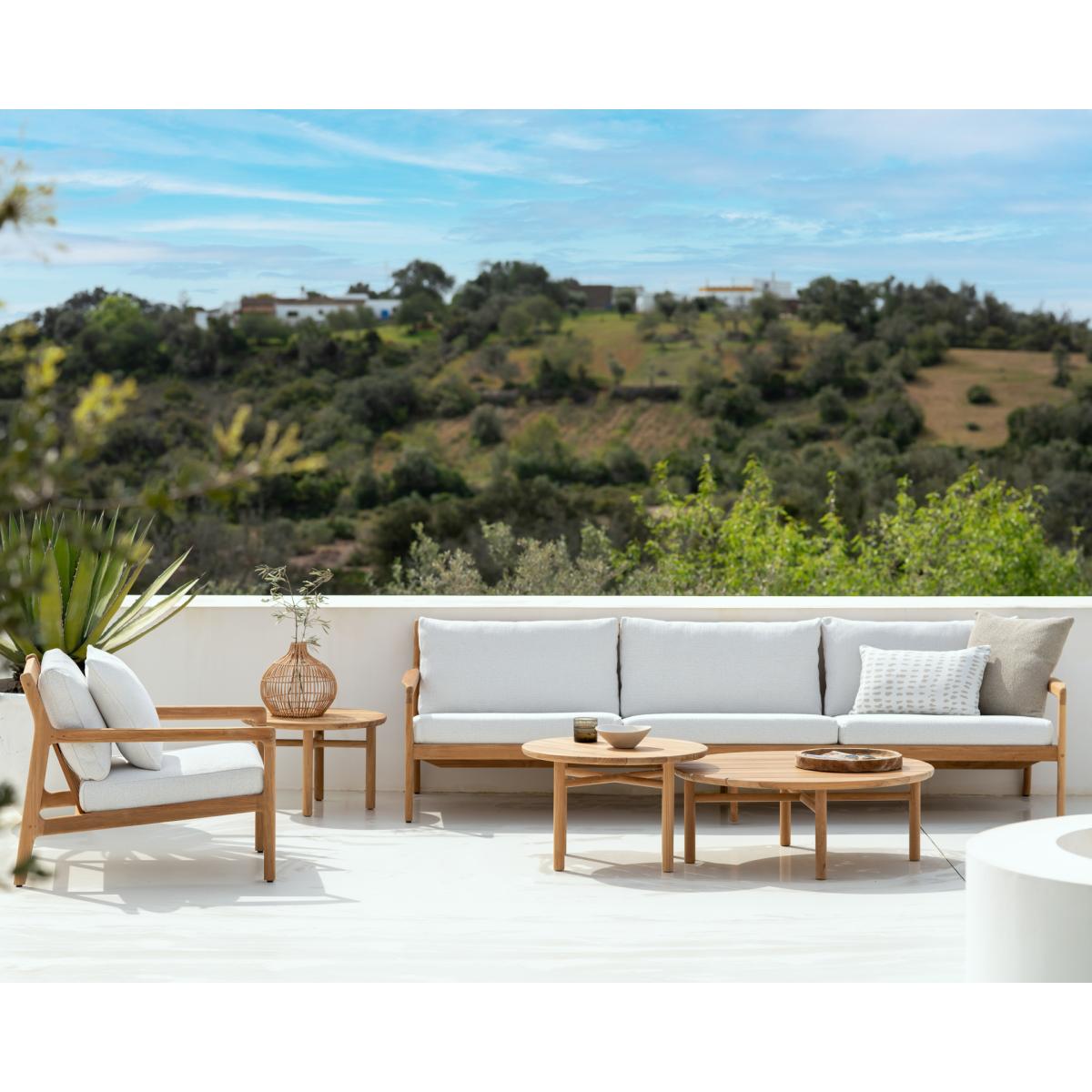 The Quatro outdoor coffee table teak from Ethnicraft is a round coffee table in solid teak for your patio. The untreated teak is maintenance-free and will over time acquire a beautiful grey patina.