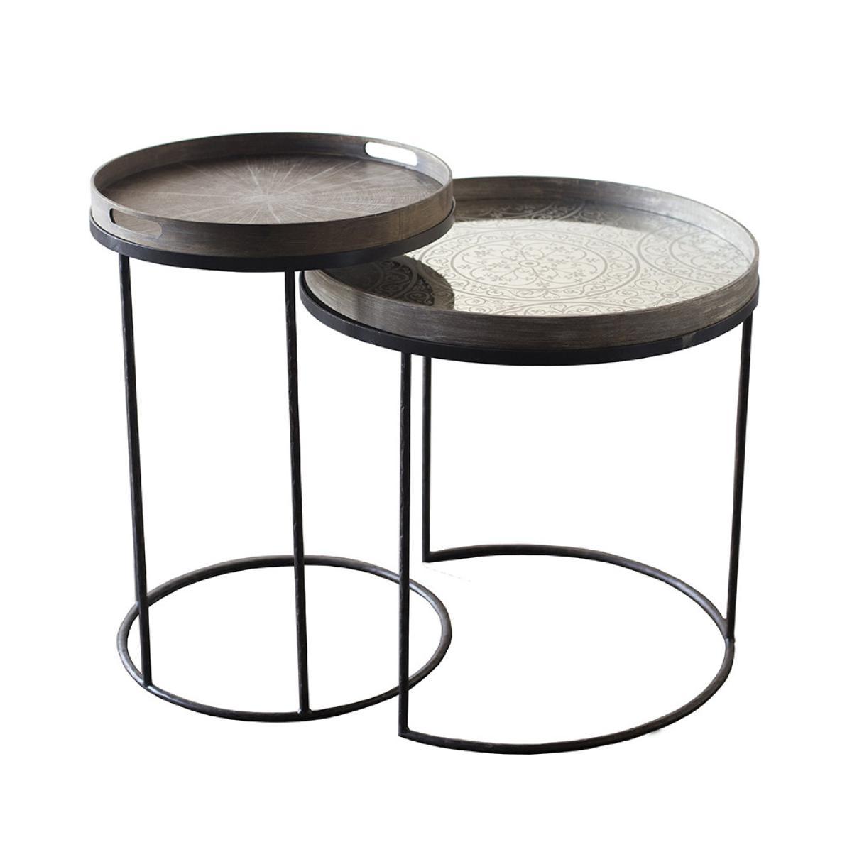 This Round Tray Table from Notre Monde is a simplistic metal frame designed to hold the range of round driftwood and mirror trays available from Notre Monde. Allowing you to mix and match designs, it is perfect for putting a personal stamp on your home and is also available as a larger size.