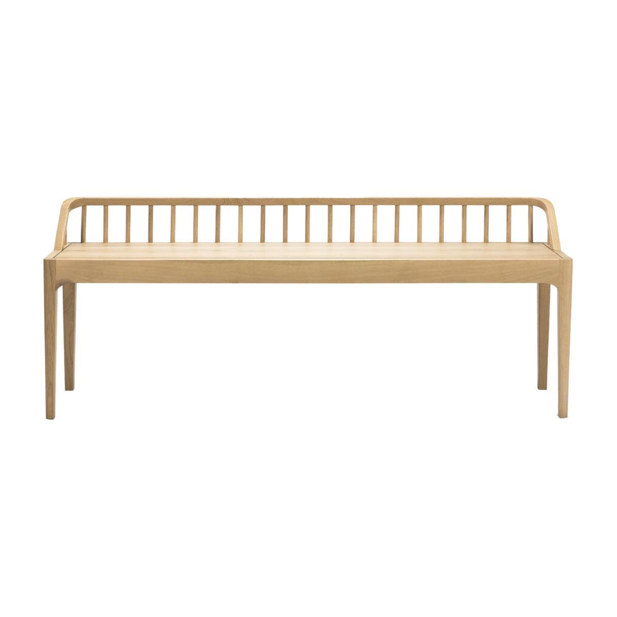 Take a seat on this Spindle bench from Ethnicraft. Inspired by traditional spinning wheels, it features perfectly aligned spokes on the backrest. Wherever you choose to place it, it'll look right at home. Key features: * Material: oak * Dimensions: H60xW150xD35cm * Seat height: 46cm * Inspired by a traditional spinning wheel * For regular dusting use a dry cloth. For cleaning or in case of a spill, use a damp cloth and natural soap, do not use abrasive products when cleaning