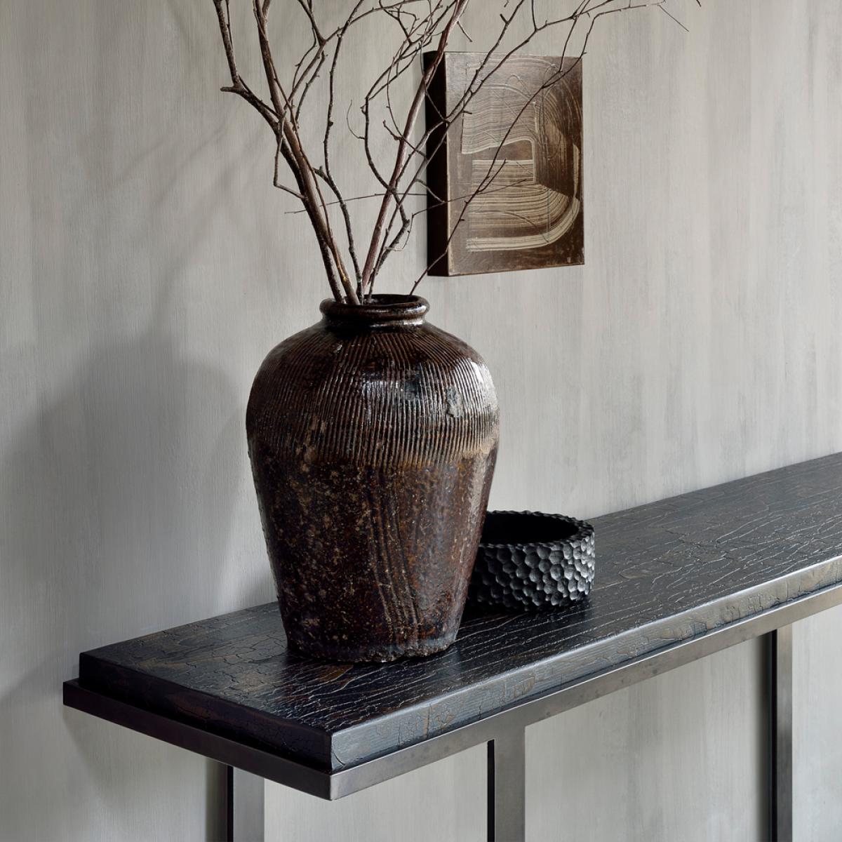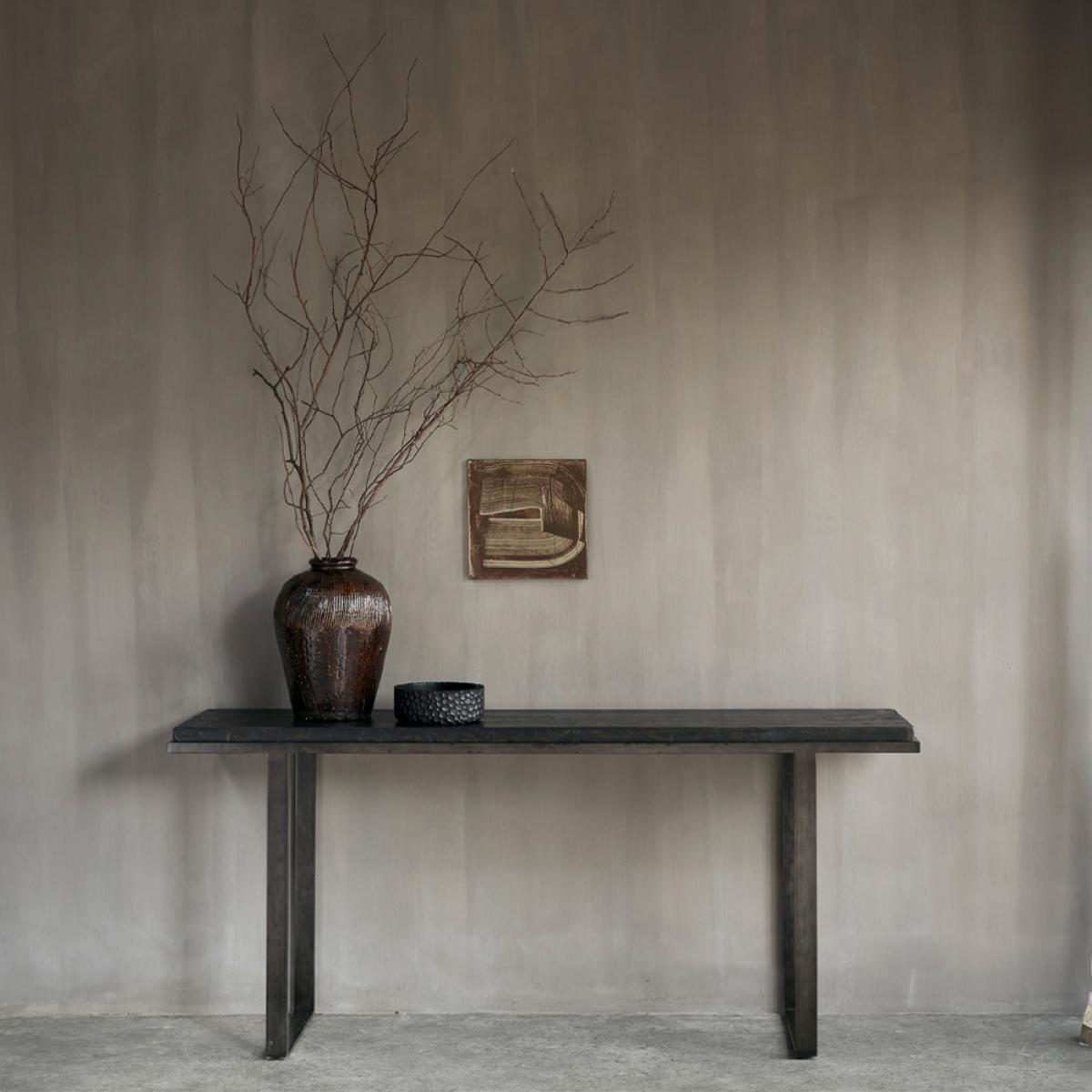Stability console table 75x170 cm from Ethnicraft. This table is defined by carefully handcrafted work where natural minerals are mixed with carefully selected color pigments. The robust and solid top highlights every detail and harmoniously blends with the more subtle and open base. Perfect for adding an elegant and timeless expression to your home, where tradition and craftsmanship come together in beautiful balance.