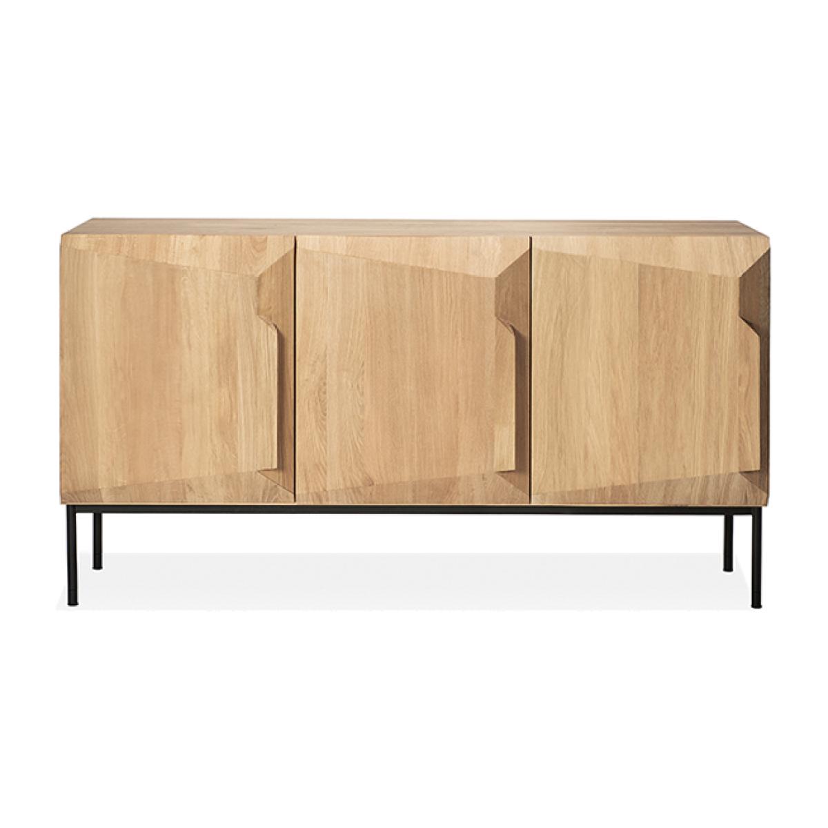 Stairs sideboard 3 doors from Ethnicraft is designed by Alain van Havre and offers an angular composition that departs from traditional static surfaces. Its structural design creates a unique volume that gives the sideboard a dynamic presence in your room. Made from solid oak, its expression and character change depending on the viewing angle. Perfect for those seeking a bold and distinctive statement in their interior.