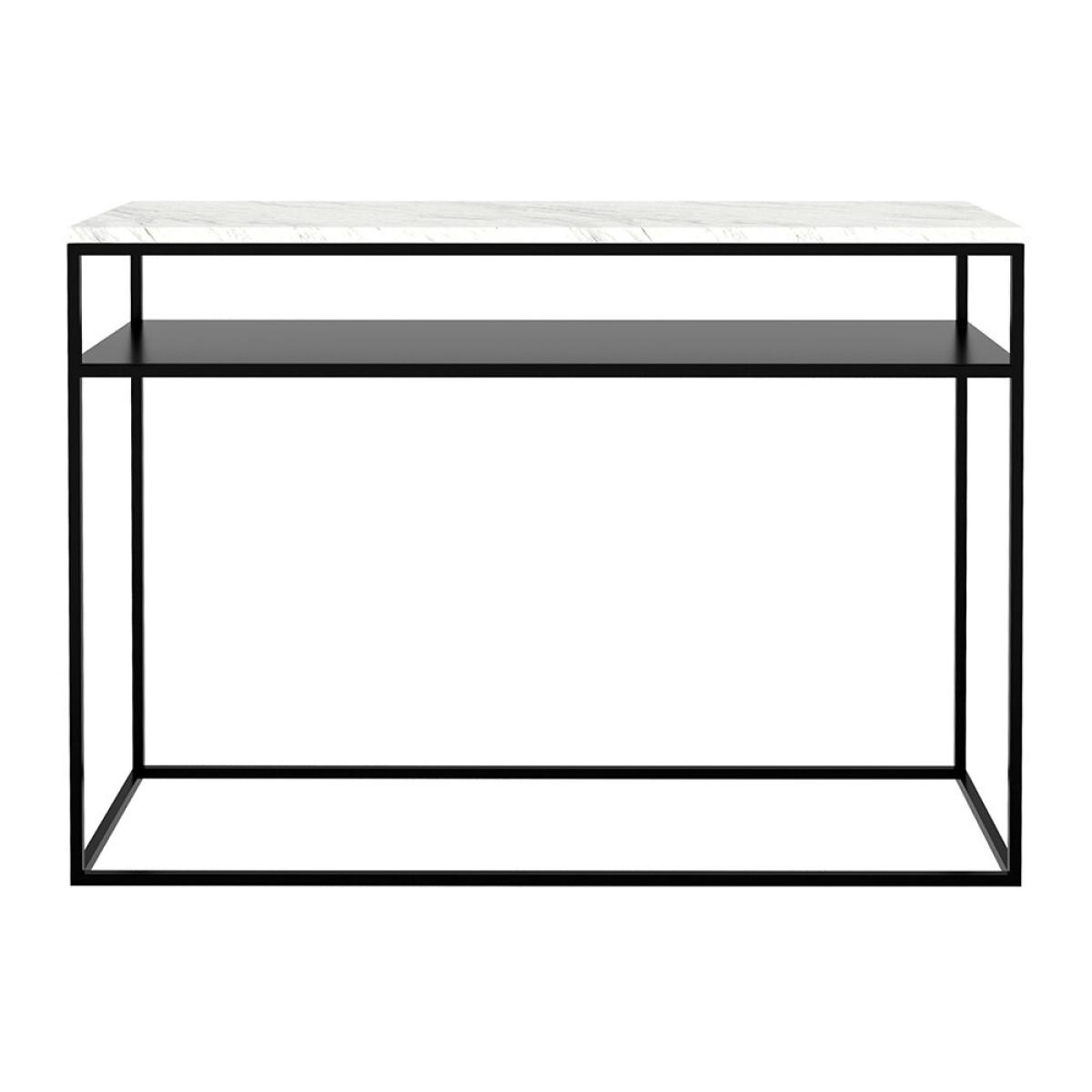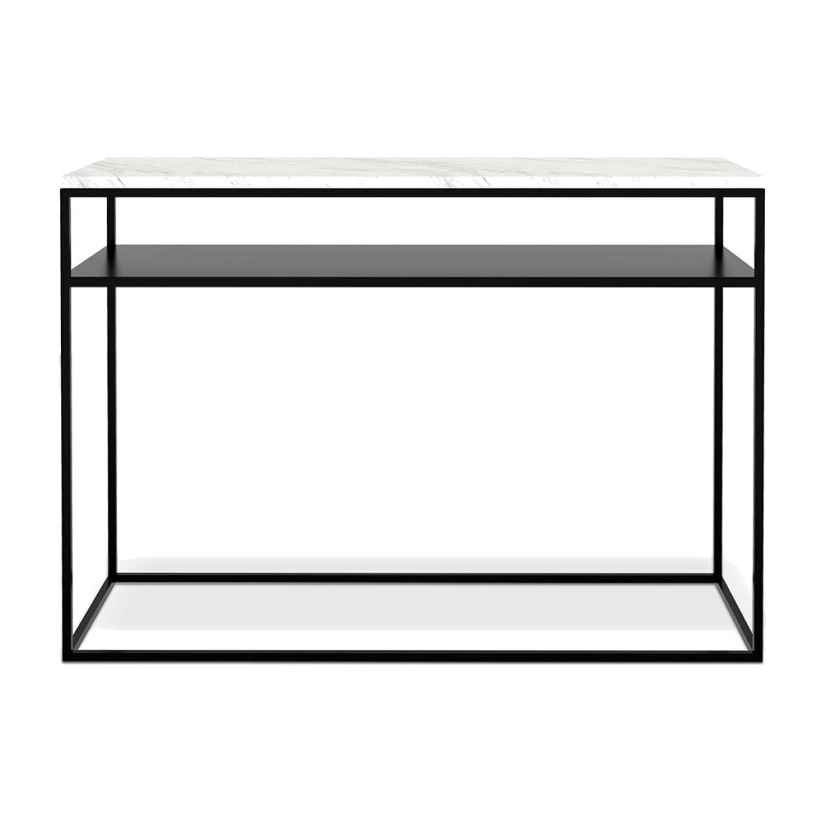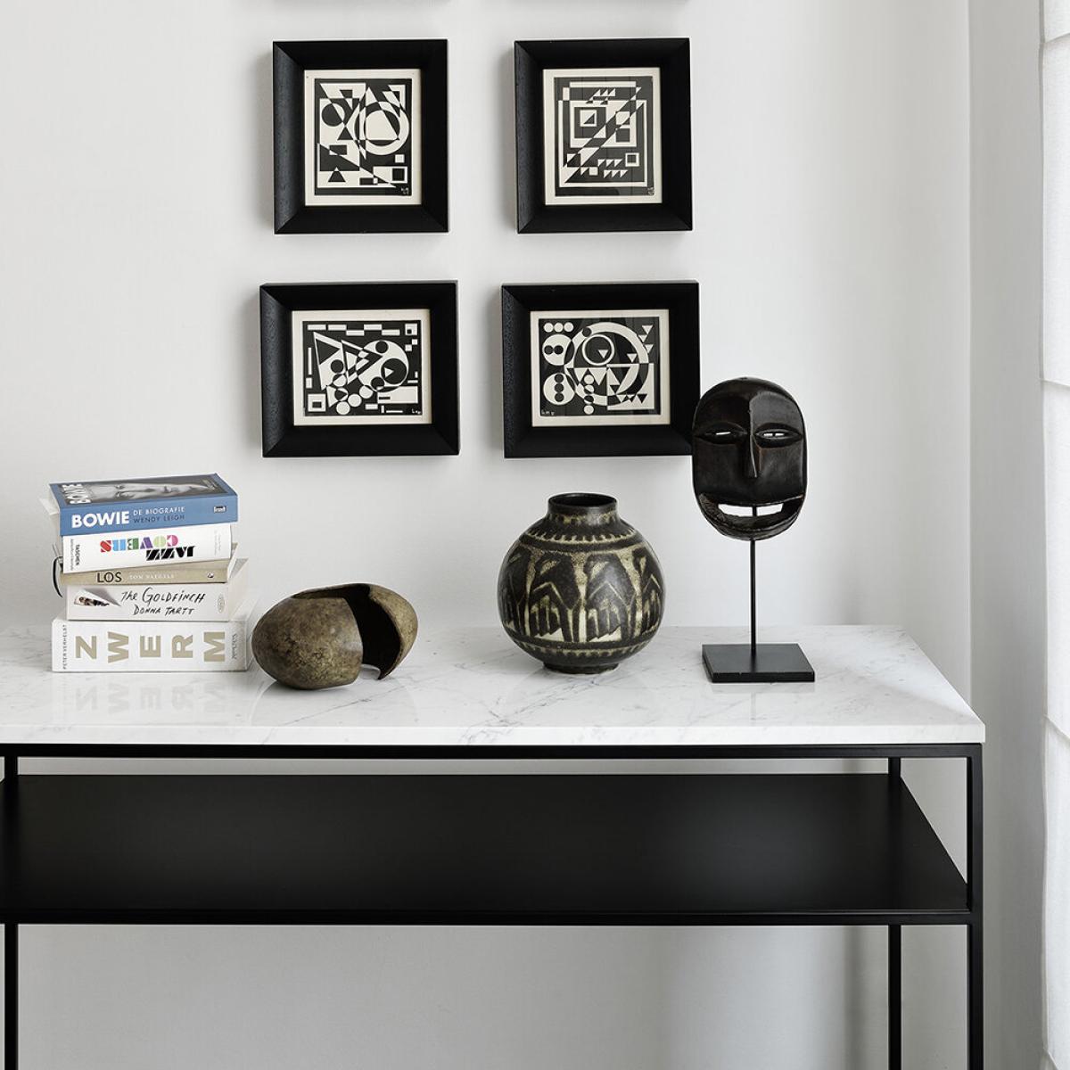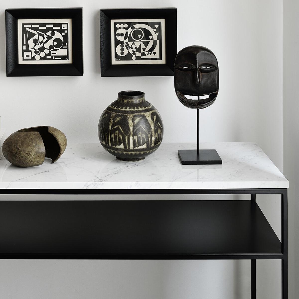 I love how this console table combines clean, modern lines with a touch of natural sophistication. Its black frame with a contrasting white or natural stone top makes it a versatile piece that works well in both contemporary and transitional interiors. It’s ideal for entryways, where you can use it to organise keys and mail, or in living rooms as a stylish display surface. Practical styling tips include pairing it with minimalist accessories like a sleek table lamp, a few carefully selected decorative objects, or greenery to soften the look. The black frame makes it easy to incorporate into colour schemes featuring bold or neutral tones, and its open design helps keep spaces feeling airy and uncluttered.