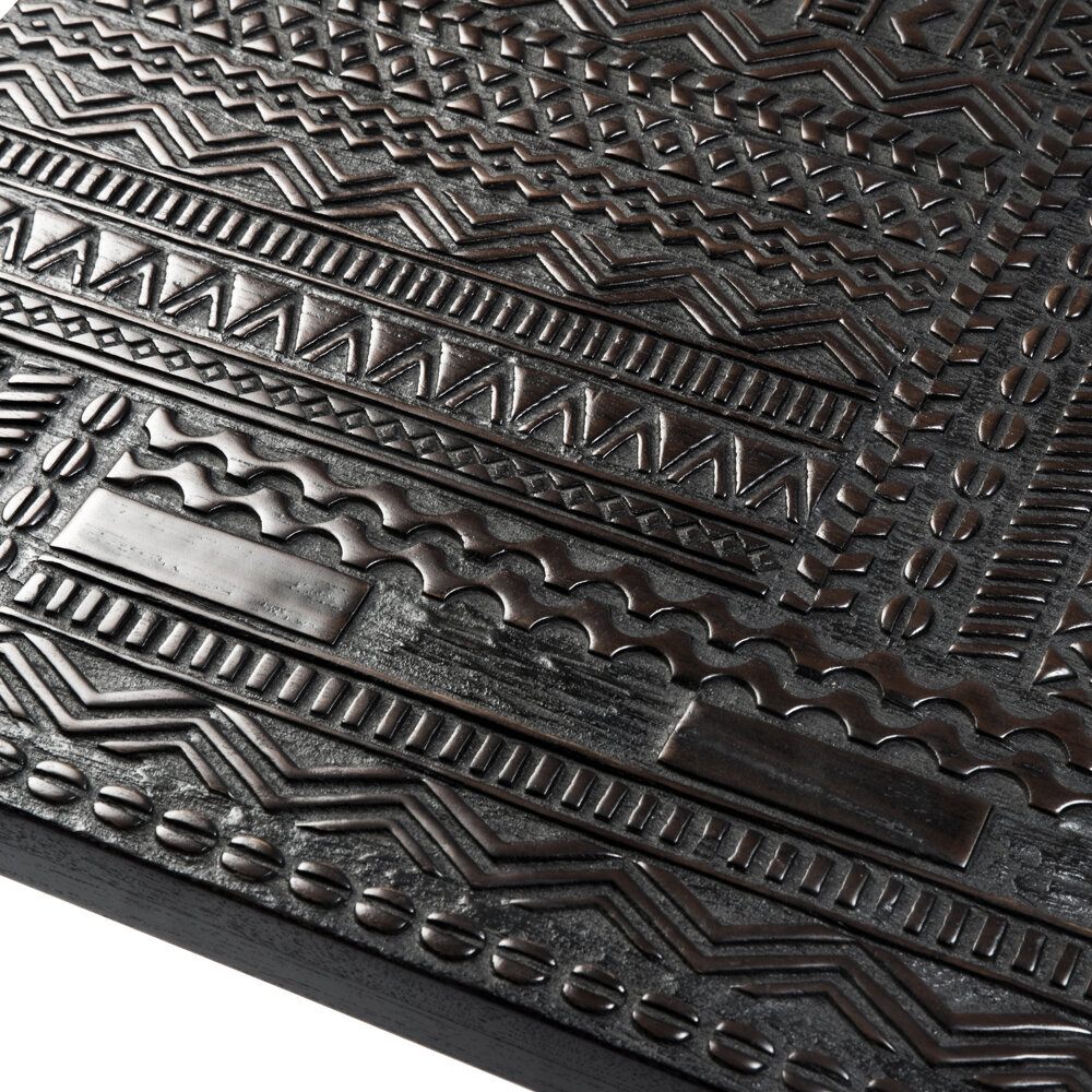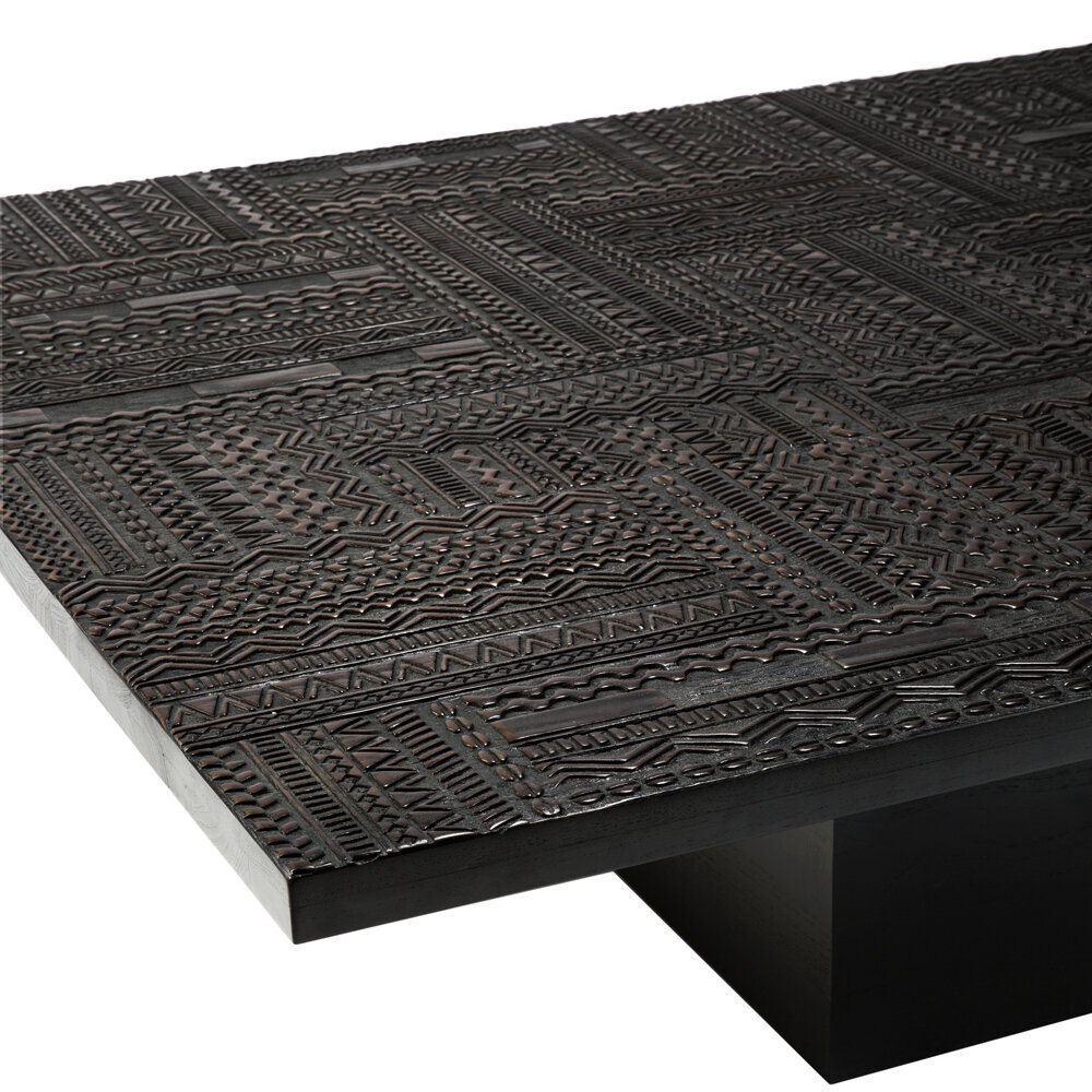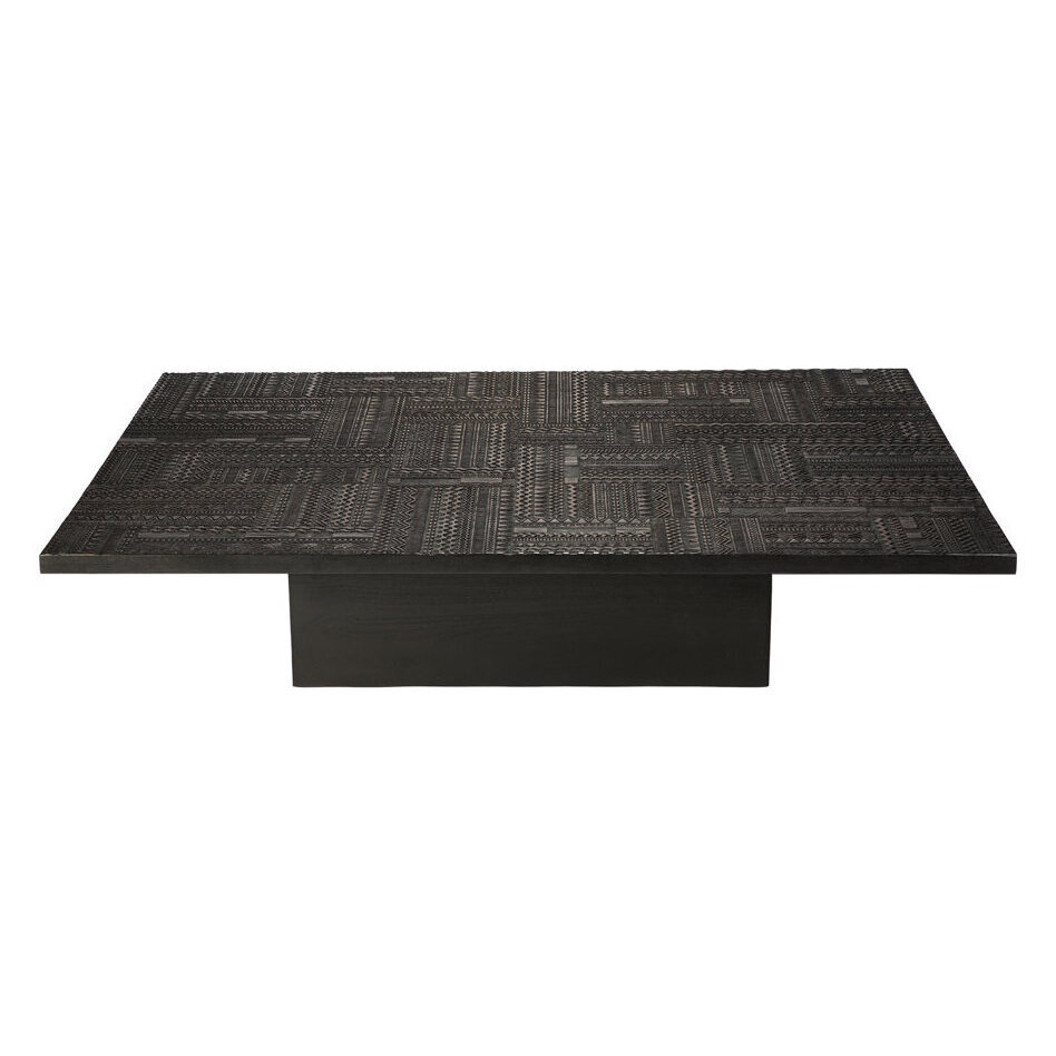 Complete your living room with this Tabwa coffee table from Ethnicraft. Made from solid teak with an oak veneer body, it features hand-carved linear geometric motifs by skilled artisans. Pair with more furniture from Ethnicraft to complete the look. Key features: * Material: teak, oak veneer * Dimensions: H36xW170xD120cm * Carved design * Linear geometric motifs * Hand-carved by skilled artisans * Please note, due to the handmade nature and natural materials used, some differences may occur * For regular dusting use a dry cloth. For cleaning or in case of a spill, use a damp cloth and natural soap, do not use abrasive products when cleaning