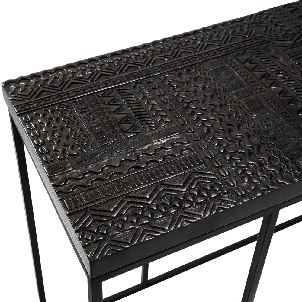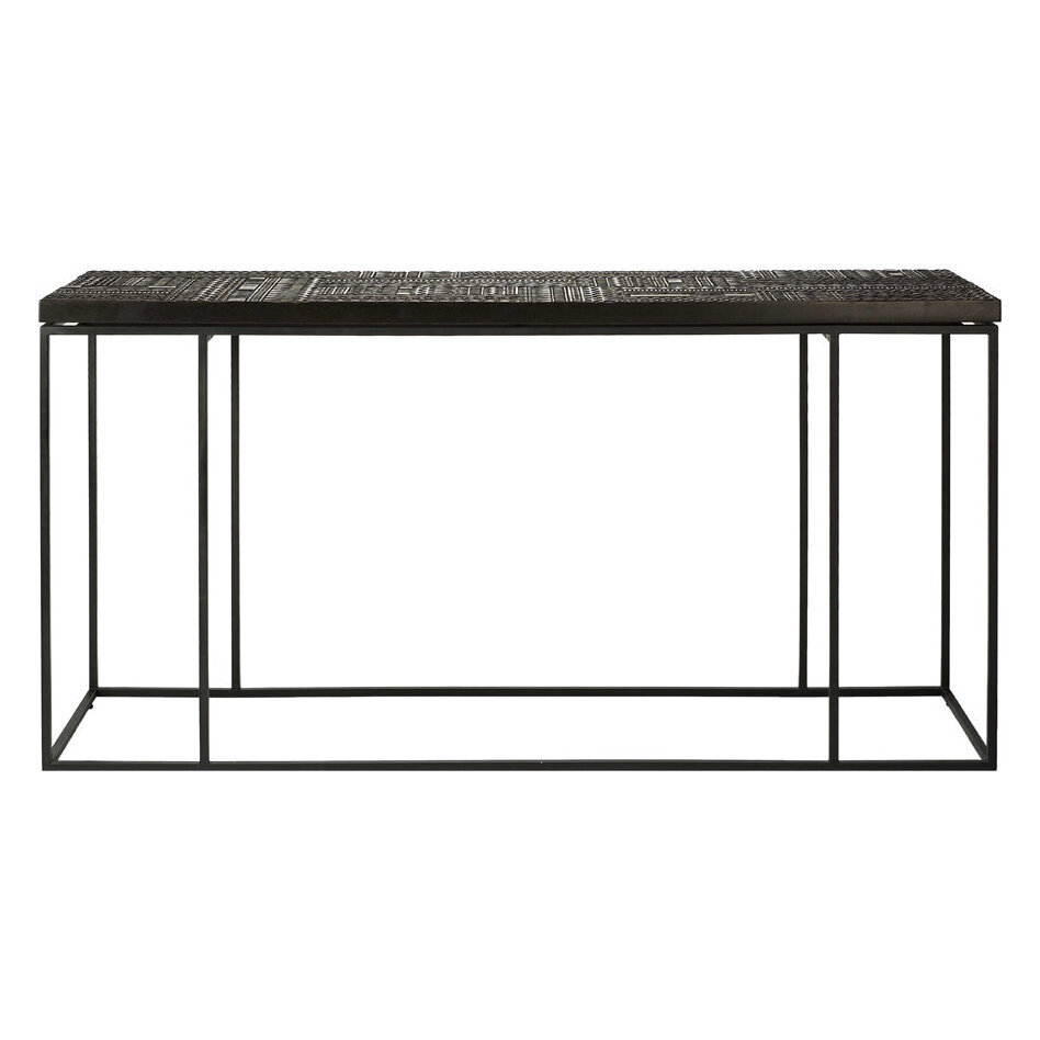 This Tabwa console table from Ethnicraft will look at home wherever you place it. Made from solid teak with metal legs, it features hand-carved linear geometric motifs by skilled artisans. Pair with more furniture from Ethnicraft to complete the look. Key features: * Material: teak, metal * Dimensions: H80xW160xD40cm * Carved design * Linear geometric motifs * Hand-carved by skilled artisans * Please note, due to the handmade nature and natural materials used, some differences may occur * For regular dusting use a dry cloth. For cleaning or in case of a spill, use a damp cloth and natural soap, do not use abrasive products when cleaning