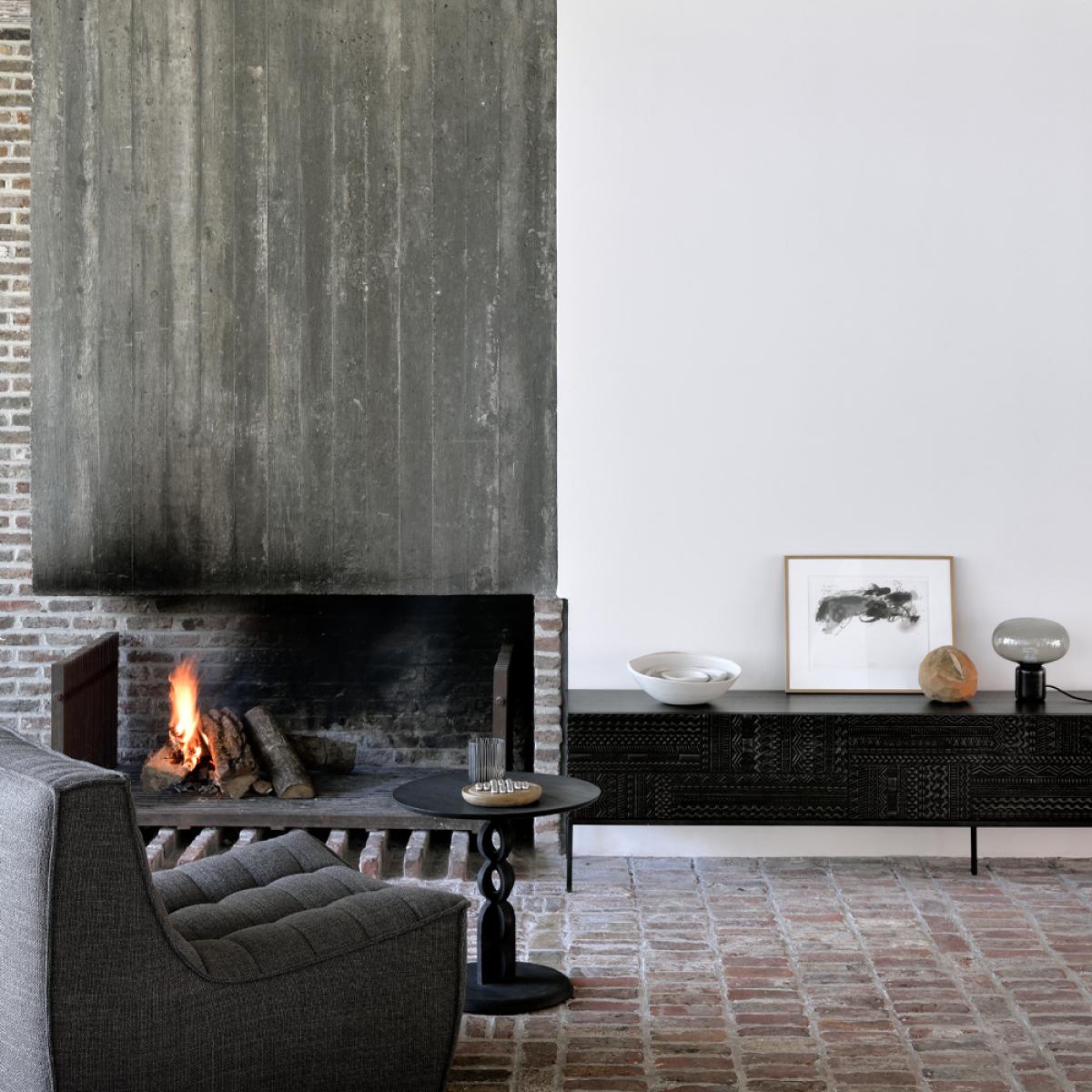 I love this piece for its sleek silhouette and rich black teak finish, which brings a contemporary yet earthy vibe to any space. It's perfect in modern or minimalist interiors, but also works well in eclectic settings that mix textures and styles. The size is ideal for anchoring a living room or a media area, offering ample storage while maintaining a clean aesthetic. Practical styling tips include pairing it with natural materials like woven baskets or ceramics on top, and balancing its dark hue with lighter upholstery or accessories to prevent a heavy feel. The raised design allows for easy cleaning underneath and adds a touch of visual lightness, making it as functional as it is stylish.