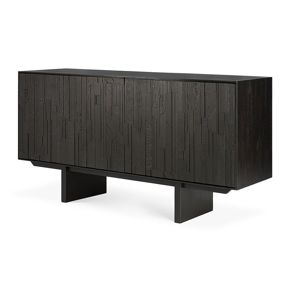Bring unique design to your interior with this Mosaic sideboard from Ethnicraft. Crafted from teak and mahogany, this sideboard has been inspired by remaining off-cuts from Ethnicraft’s factory and features layered pieces of wood reminiscent of the partition of a pipe organ on the doors. Designed by Alain van Havre, who is deeply influenced by music within his creative process, this sideboard will make a statement in any space.
