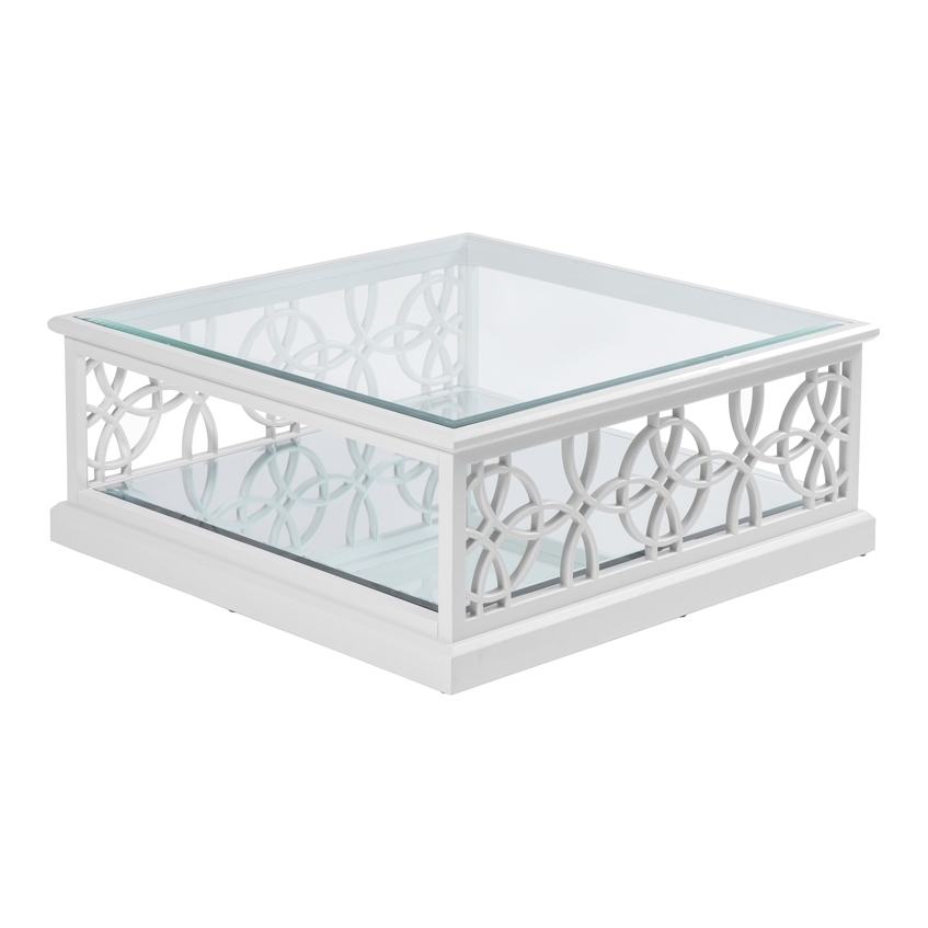 I’m a big fan of this Etienne table for its crisp white frame and geometric lattice sides - it brings just enough pattern without overwhelming a space. The clear glass top and mirrored lower shelf keep the look light, so it works equally well in coastal, Scandinavian or modern-glam interiors. For styling, keep the top neat with a sculptural bowl or a small stack of coffee-table books and a single vase, then use the lower shelf for a tidy tray of coasters and remotes. That way you make the most of both layers without creating clutter.