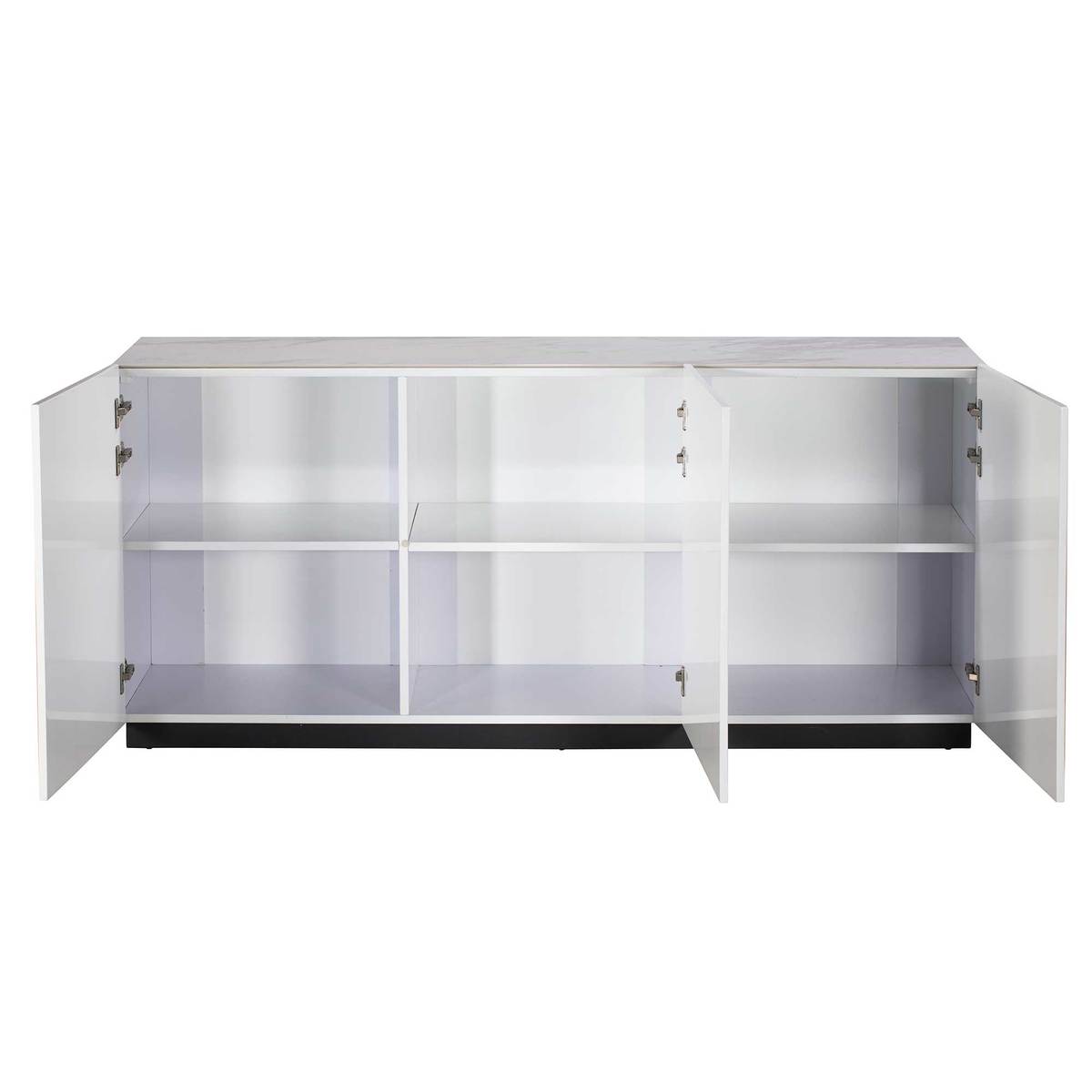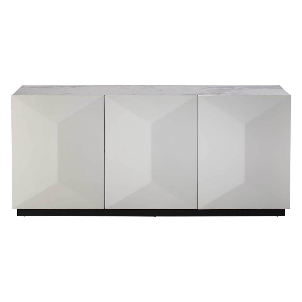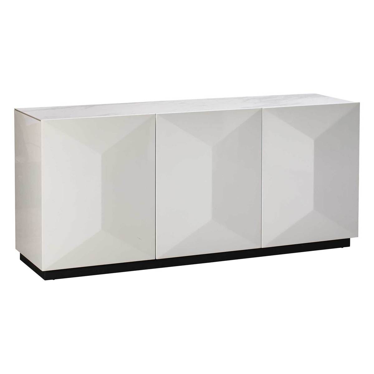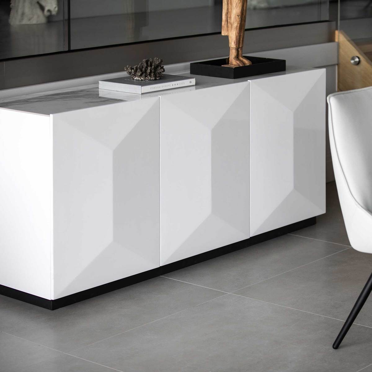 Sophisticated and stylish, the Etienne Wide Sideboard’s two tone look, ceramic top and geometric doors create a statement in any space.;Providing practical storage too, the Etienne features 3 cupboards that each have a handy central shelf, offering a great spot to tuck away occasional items and extra tableware.