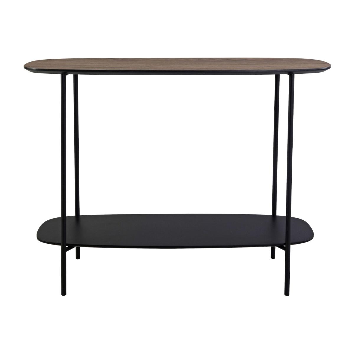 Étoile two-tiered console table, featuring a matte black lower table and legs and a mocha veneer top table. This sleek piece marries form and function, featuring a mocha veneer top that adds warmth to your space, while the matte black legs offer a contemporary contrast. Perfect for narrow hallways, this console table provides a stylish spot for your keys, mail, or decorative objects without compromising on space. The Étoile console table's modern design seamlessly blends with various decor styles, making it a versatile addition to your home. While some assembly is required, the result is a stunning piece that's both practical and eye-catching. Remember to treat your new table with care - avoid hot items directly on the surface and wipe up spills promptly to maintain its beauty for years to come. Étoile two-tiered console table, featuring a matte black lower table and legs and a mocha veneer top table. This sleek piece marries form and function, featuring a mocha veneer top that adds warmth to your space, while the matte black legs offer a contemporary contrast. Perfect for narrow hallways, this console table provides a stylish spot for your keys, mail, or decorative objects without compromising on space. The Étoile console table's modern design seamlessly blends with various decor styles, making it a versatile addition to your home. While some assembly is required, the result is a stunning piece that's both practical and eye-catching. Remember to treat your new table with care - avoid hot items directly on the surface and wipe up spills promptly to maintain its beauty for years to come.
