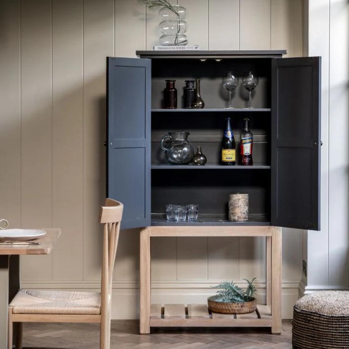 A modern update on a classic farmhouse style cabinet. Offering plenty of space with an upper cupboard and a lower shelf, this cabinet is a great storage solution. The traditional rustic elements are given a contemporary twist with the hand painted textured finish top paired with the solid oak base. Due to the handmade nature of this product colour variations may be present.
