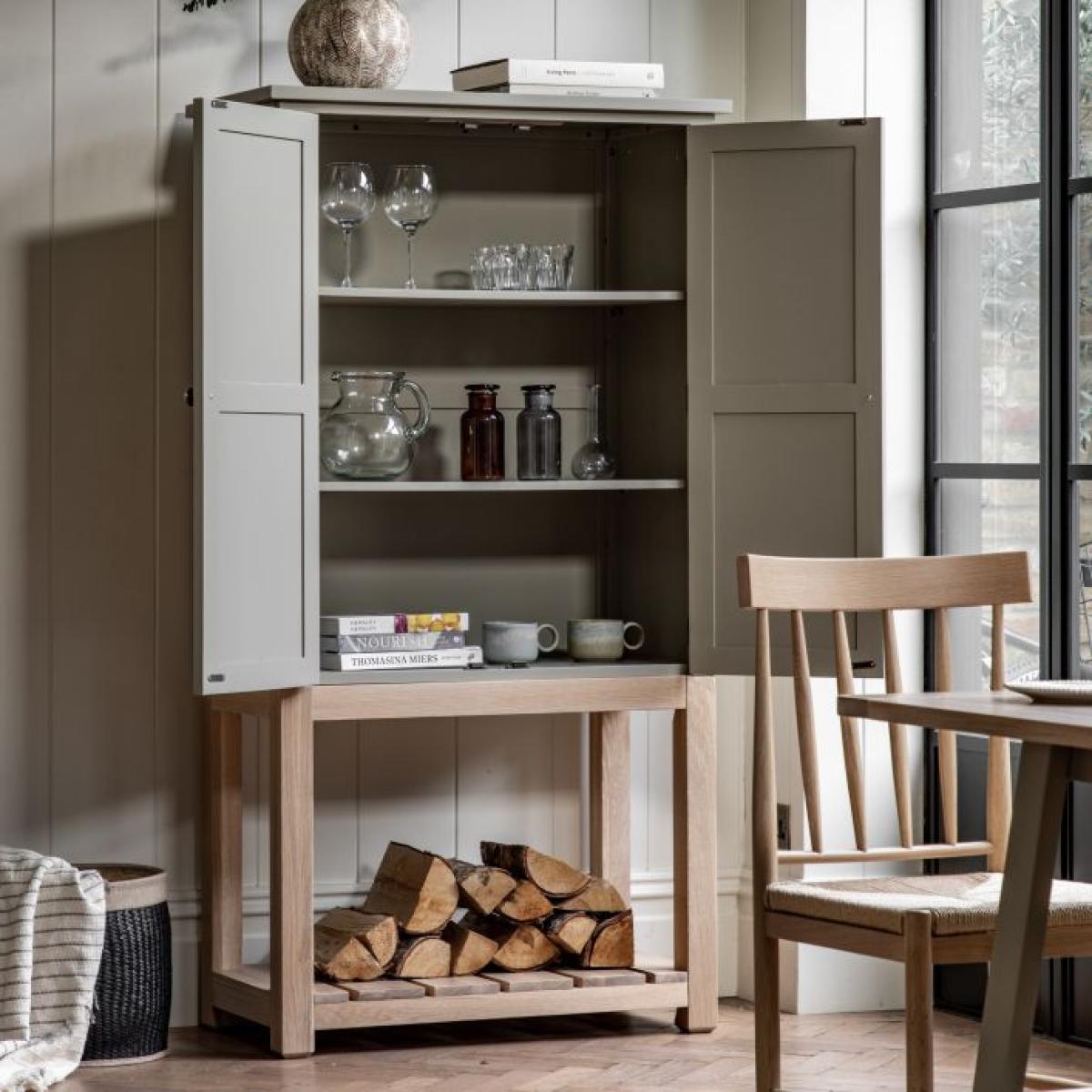 A modern update on a classic farmhouse style cabinet. Offering plenty of space with an upper cupboard and a lower shelf, this cabinet is a great storage solution. The traditional rustic elements are given a contemporary twist with the hand painted textured finish top paired with the solid oak base. Due to the handmade nature of this product colour variations may be present.
