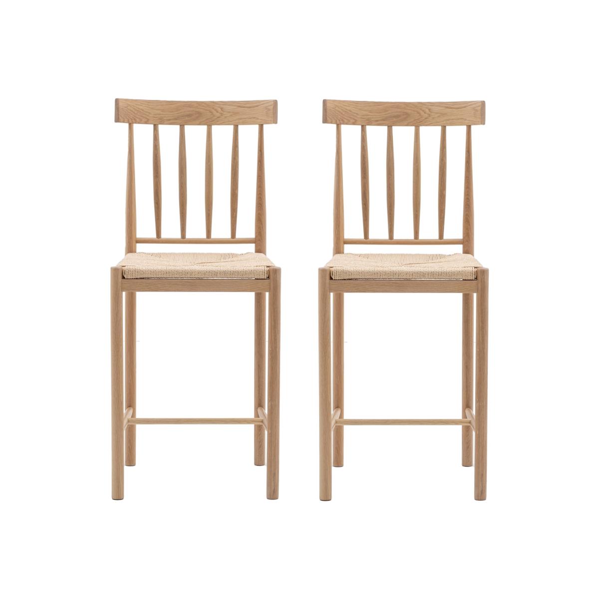 Eton Set of 2 Solid Oak Bar Stools with Woven Seats Natural - Caspian House