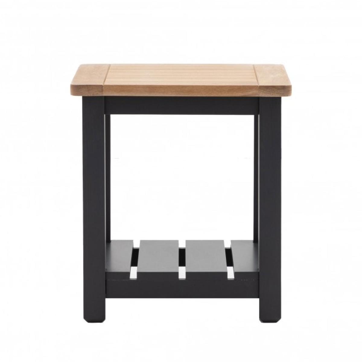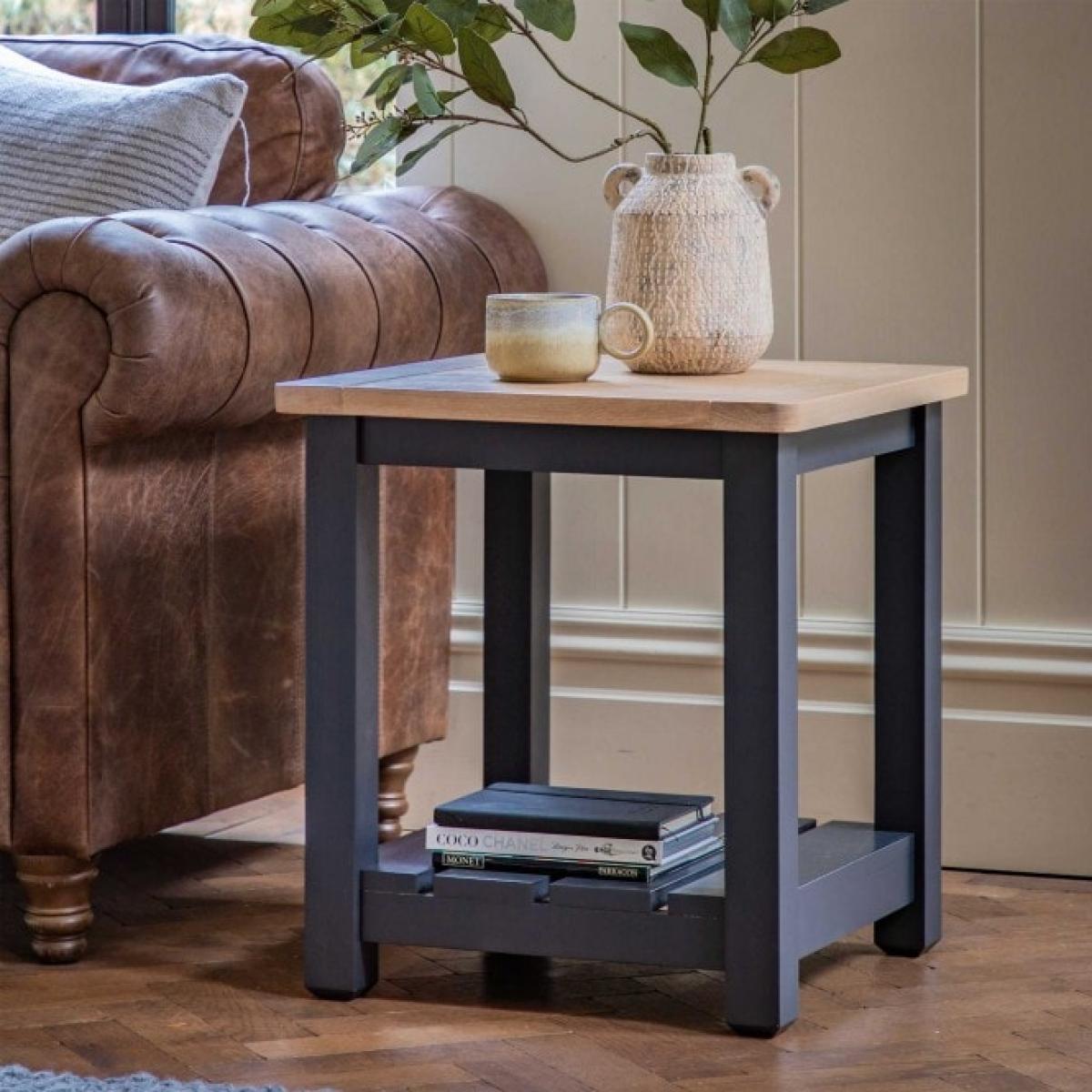 With its simple design and combination of hand painted wood and grooved & planked oak top, this side table offers a contemporary twist on a traditional style. The shelf below the table adds an extra practical touch. Due to the handmade nature of this product colour variations may be present.