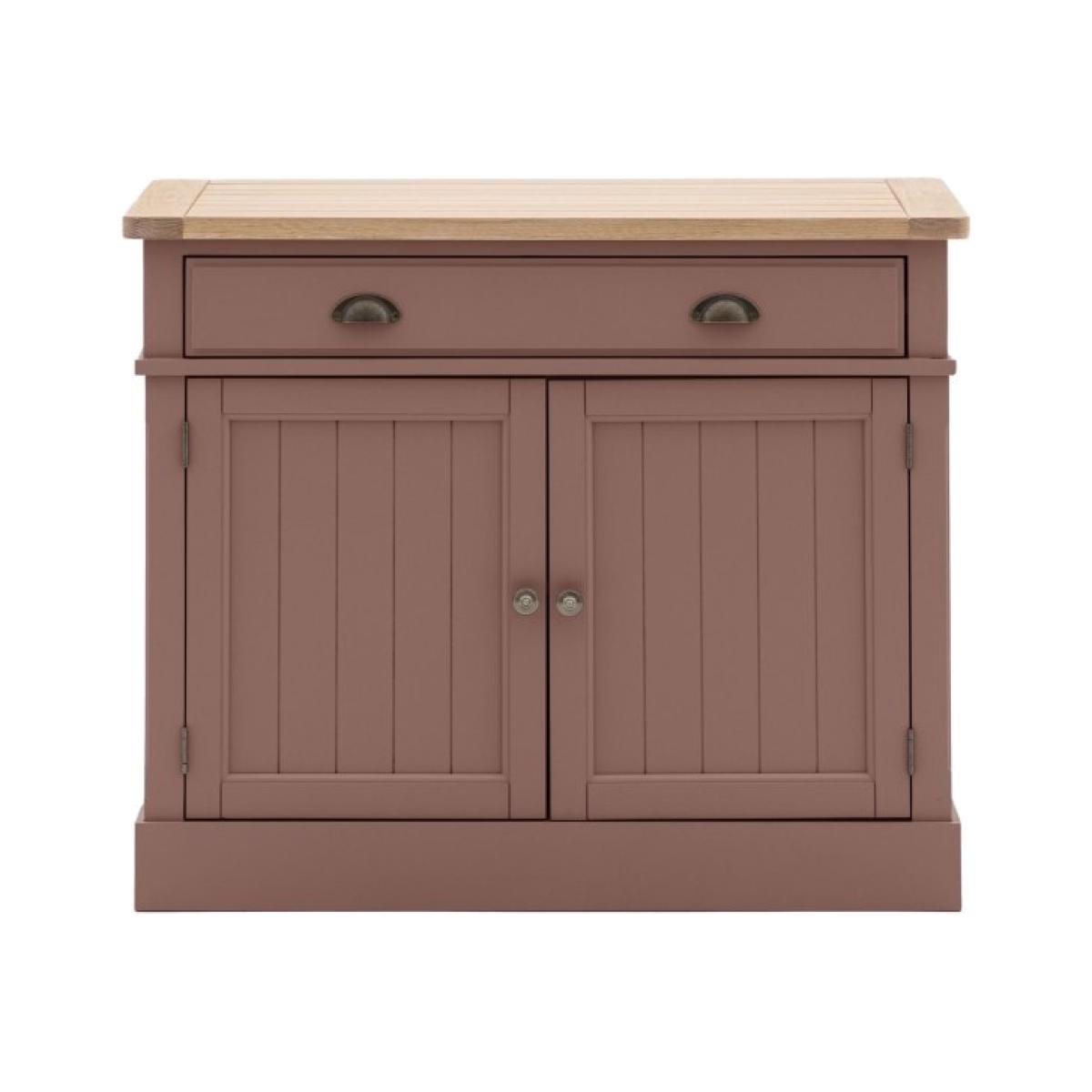 This sideboard combines traditional charm with contemporary style. Offering practical storage with a single large draw and 2 door cupboard with adjustable shelves, there's plenty of storage space. The combination of the grooved & planked oak vaneered MDF top with hand painted textured finish base, grooved doors and traditional style metal handles gives the sideboard a modern twist on a country classic style. Due to the handmade nature of this product colour variations may be present.