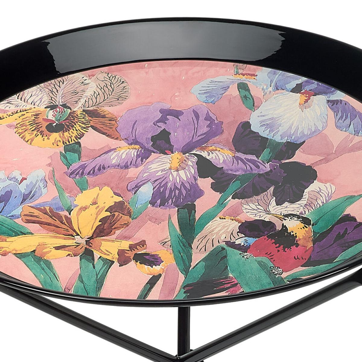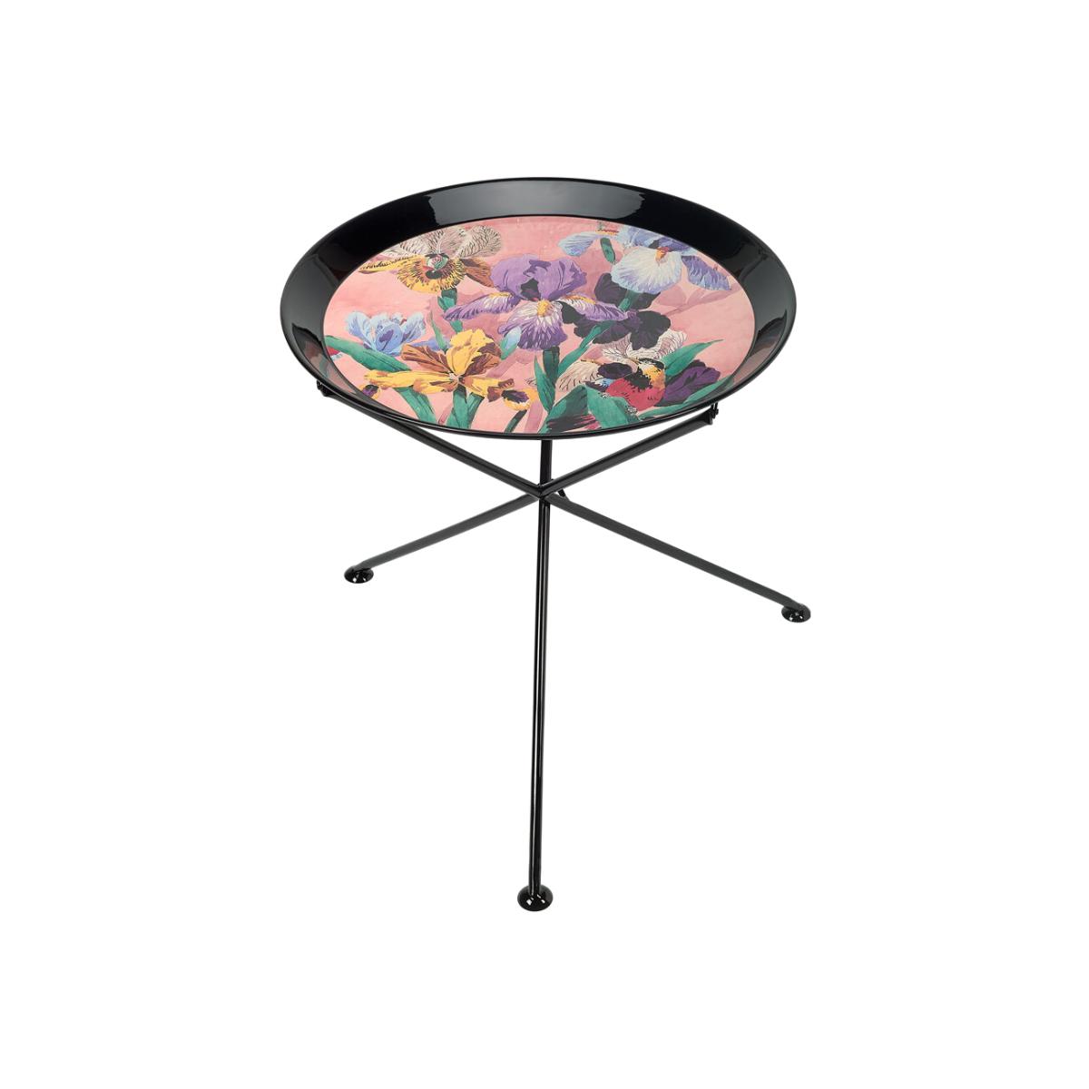Add some Italian elegance to your interior with this Voyage En Angleterre table from Etro. Topped with an ornate and painterly floral print, this side table has a sleek black frame. Made in Italy, it’s chic in any space.