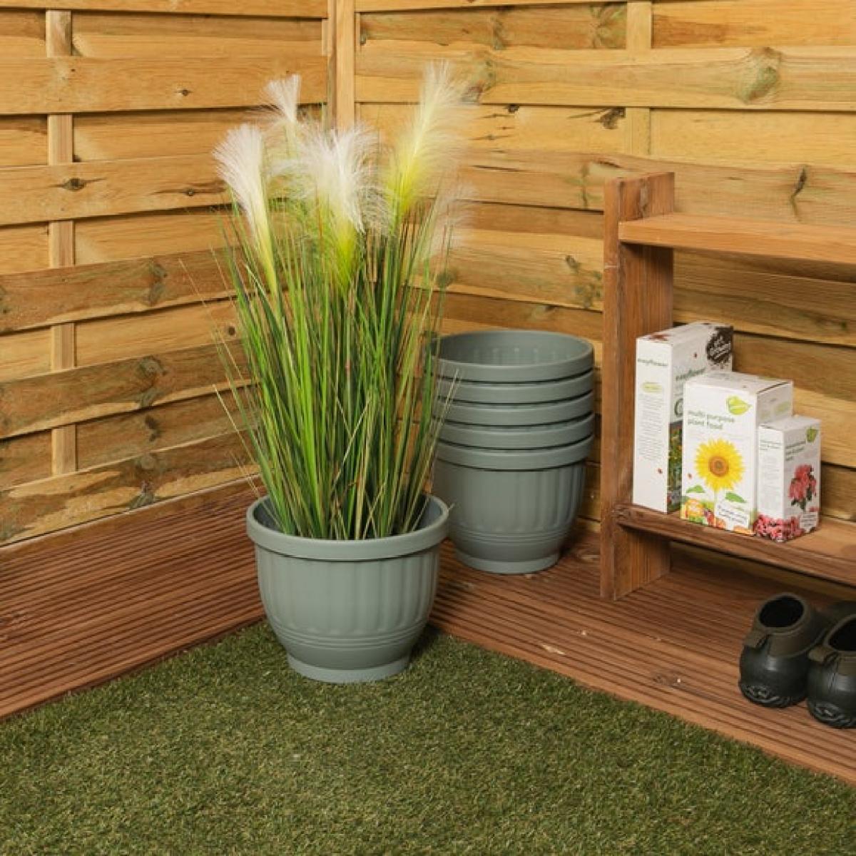 * Plastic plant pots * Durable and built to last * Lightweight * Frost resistant A charming way to showcase your favourite plants, this set of six Etruscan round plant pots are designed with both style and practicality in mind. Made from recycled plastics, they offer a lightweight build that’s easy to move around your home or garden, while their durable construction ensures they stand up to everyday use without cracking.
