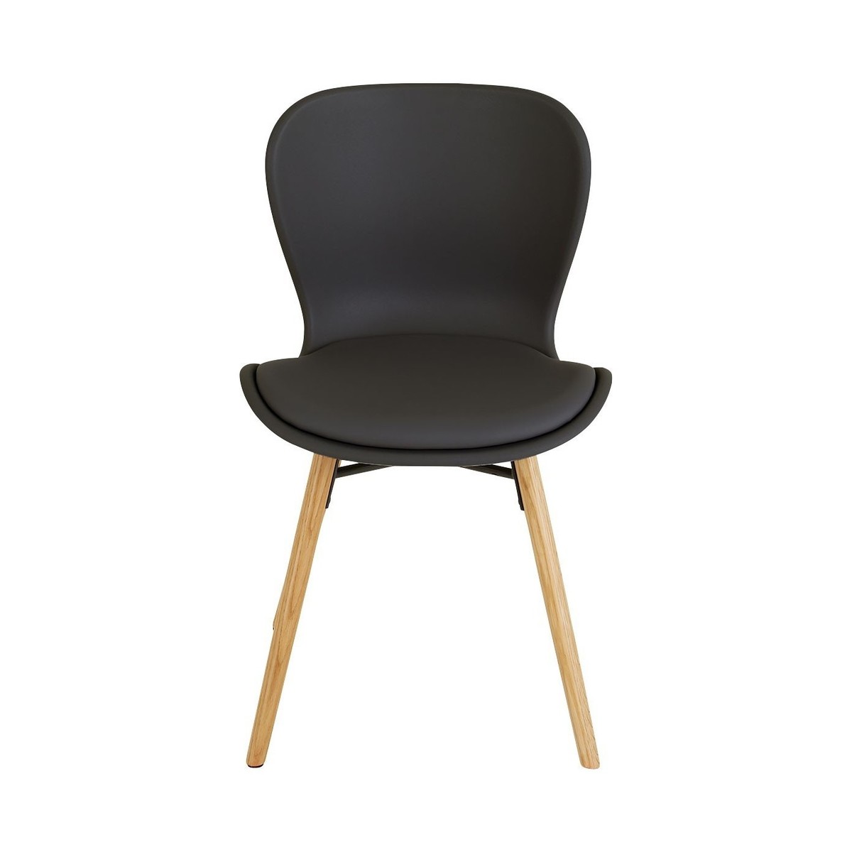 The Etta black plastic and faux leather dining chair with oak-finish legs has a slightly scooped seat with a curved back and rounded edges for comfort.;The dining chair is the perfect complement to the Etta extending dining table and other oak designs in our collection.;The Etta range includes a sideboard and bench, and the chairs are available in a wide choice of colours, materials and finishes.