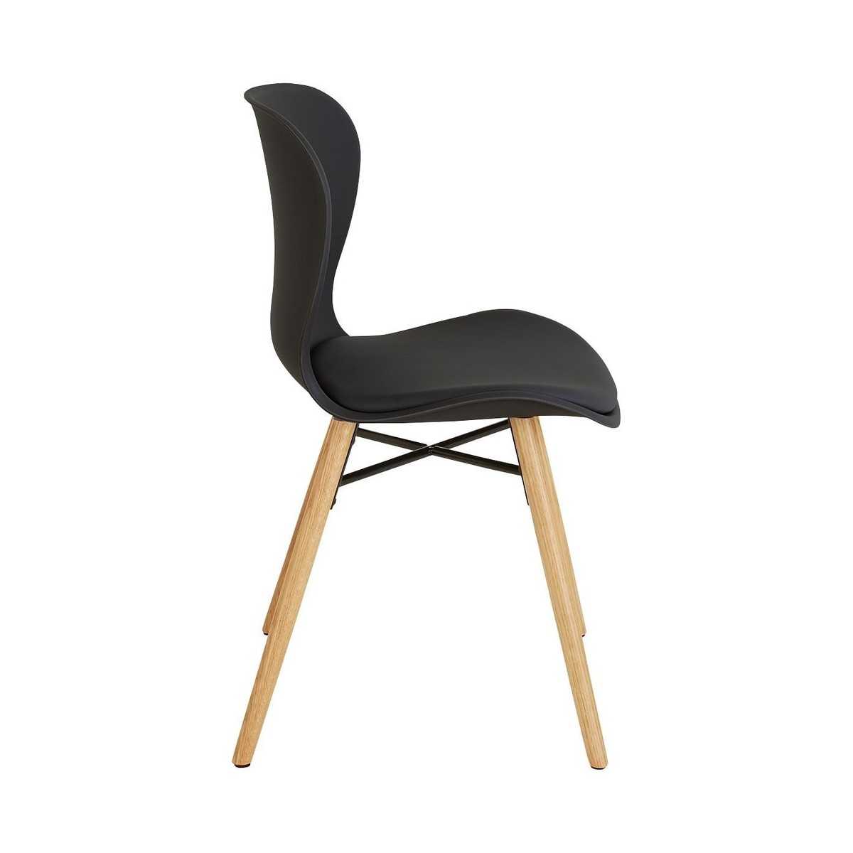 I love the ETTA chair for its blend of modern simplicity and functionality. Its sleek black plastic and faux leather seat make it versatile enough to suit various interiors, from contemporary minimal spaces to Scandinavian-inspired dining rooms. The oak-finish legs add warmth and a touch of natural detail that balances the darker seat. For practical styling, consider pairing it with a solid timber or mixed-material table and adding cushions in bold or muted tones to introduce colour and texture. It also works well in both casual kitchens and more formal dining settings, making it a flexible choice for a wide range of decorative schemes.