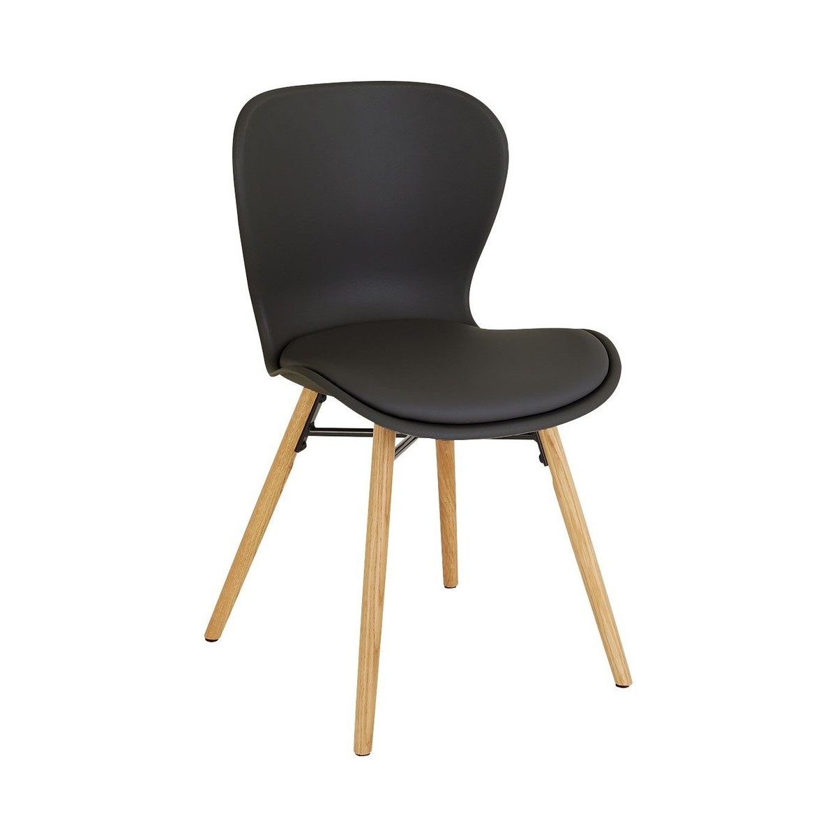 ETTA CHAIR Black plastic and faux leather dining chair with oak-finish legs