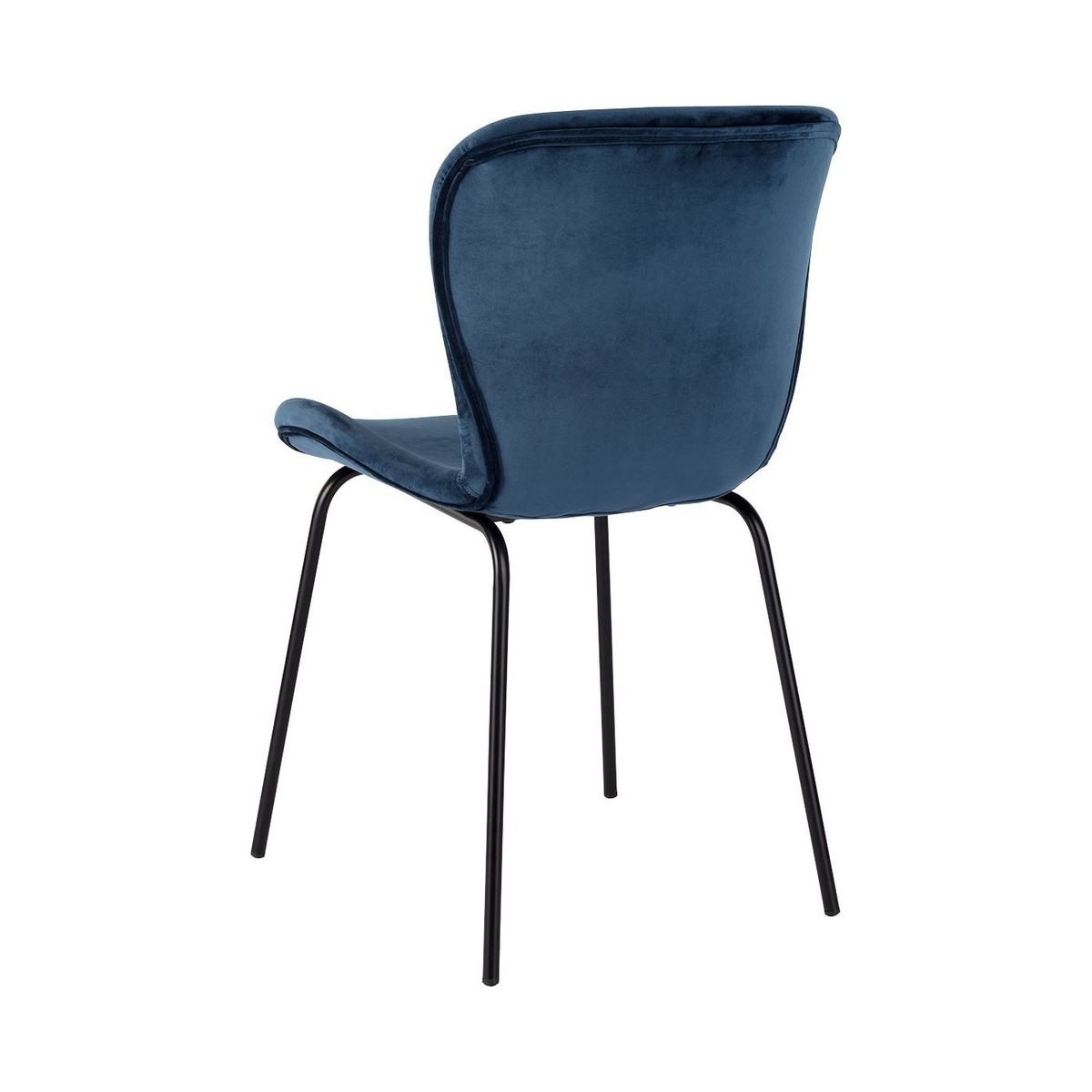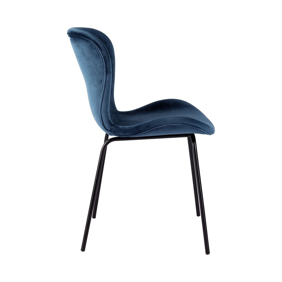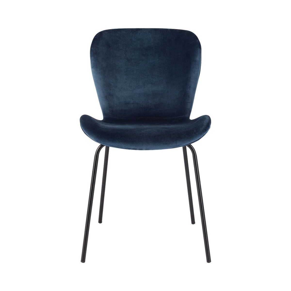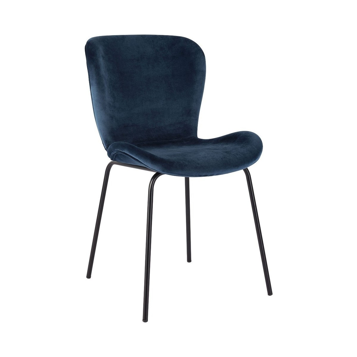 The Etta dark blue velvet upholstered dining chair with black metal legs has a slightly scooped seat with a curved back and rounded edges for comfort.;The dining chair complements the Etta black-stained oak extending dining table and other designs in our collection.;The Etta range includes a sideboard and bench, and the chairs are available in a wide choice of colours, materials and finishes.