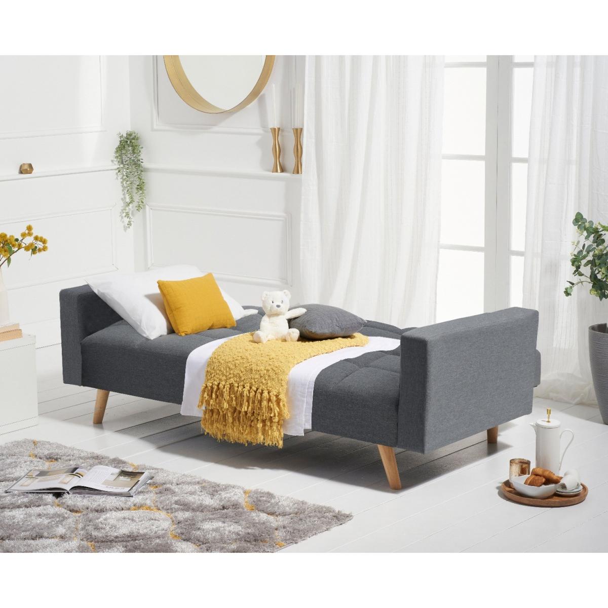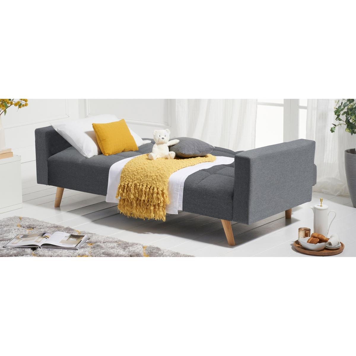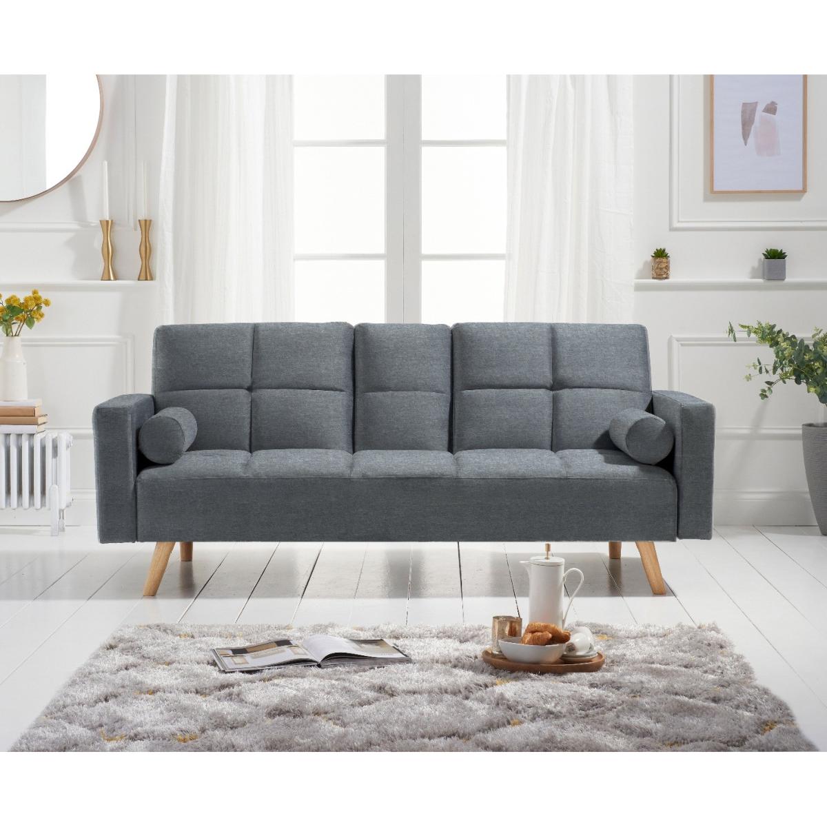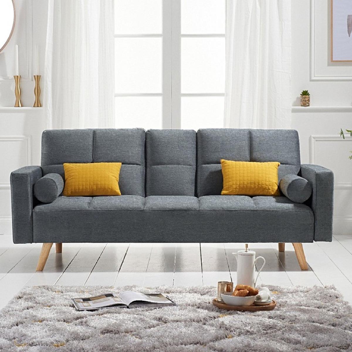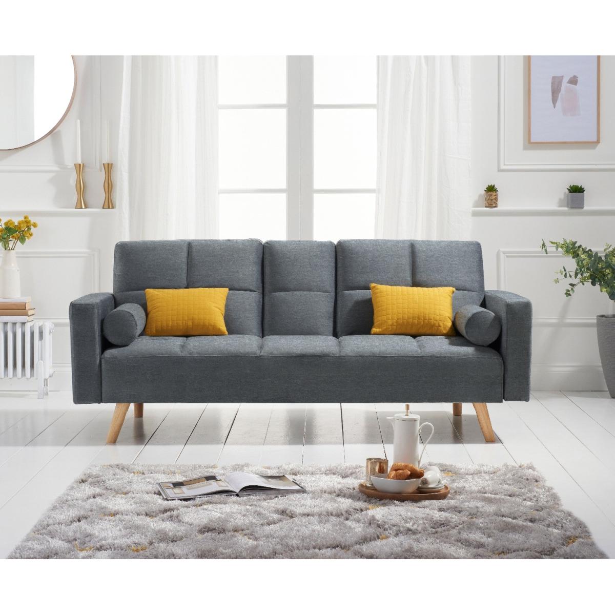 Seasons pass and trends come and go, but the styling of the Etta sofa is timeless. An exciting contemporary shape combines traditional upholstery, tufted seats and bolster cushions for extra comfort - whether as a sofa or a bed. Finished with iconic Chesterfield style buttoning that adds visual softness drawing your attention to the gorgeous fabric. Traditional quality upholstery with Chesterfield style buttoning. Stylishly inclined Oak legs. Comfortably seats three or sleeps two. Choose from classic velvet in blue, grey or green or modern grey linen. Just assemble the legs and your sofa is ready!